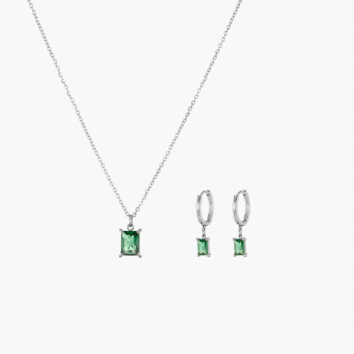 Zestaw z kryształem prostokątnym zielonym srebrny