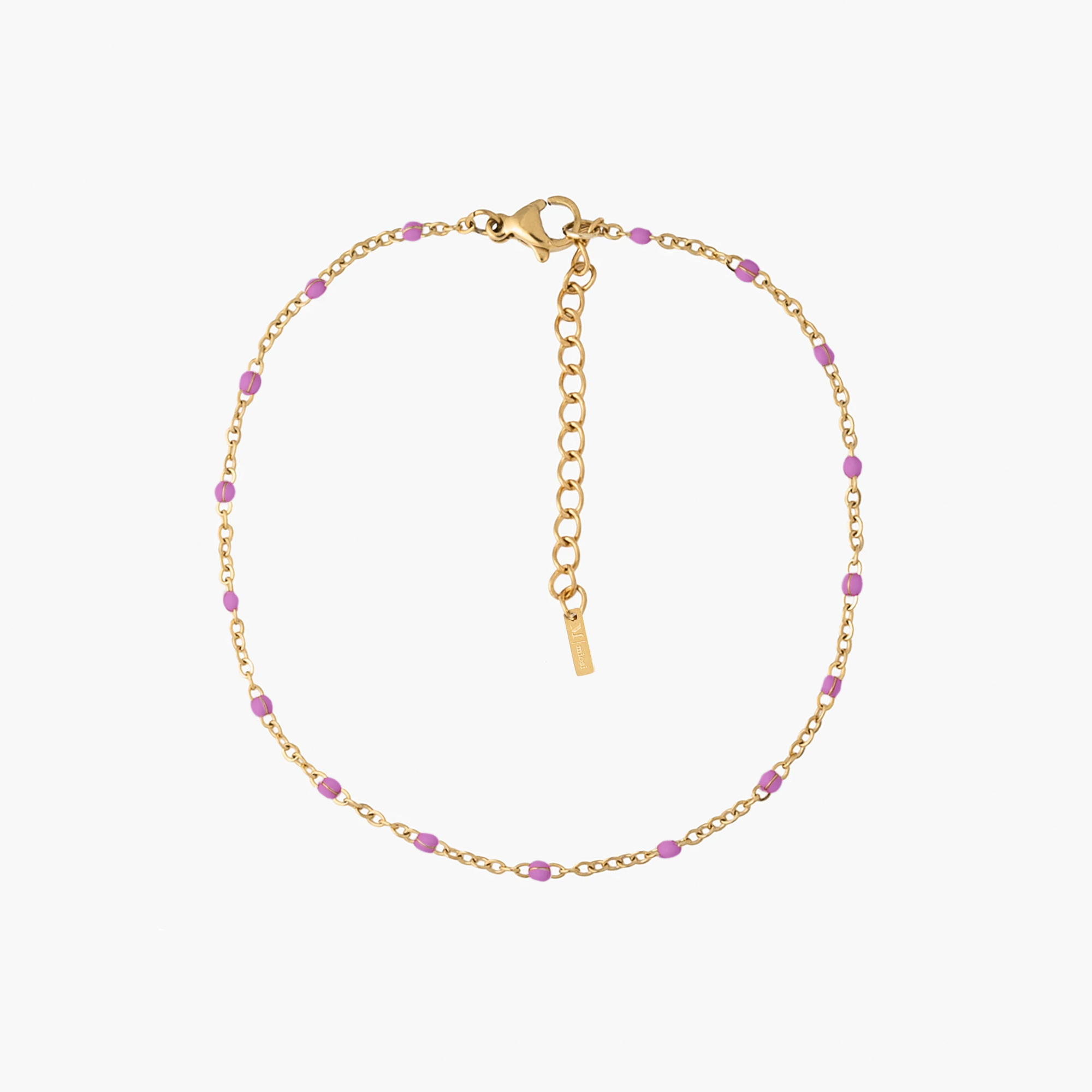 Bransoletka na nogę z fioletowymi koralikami złota