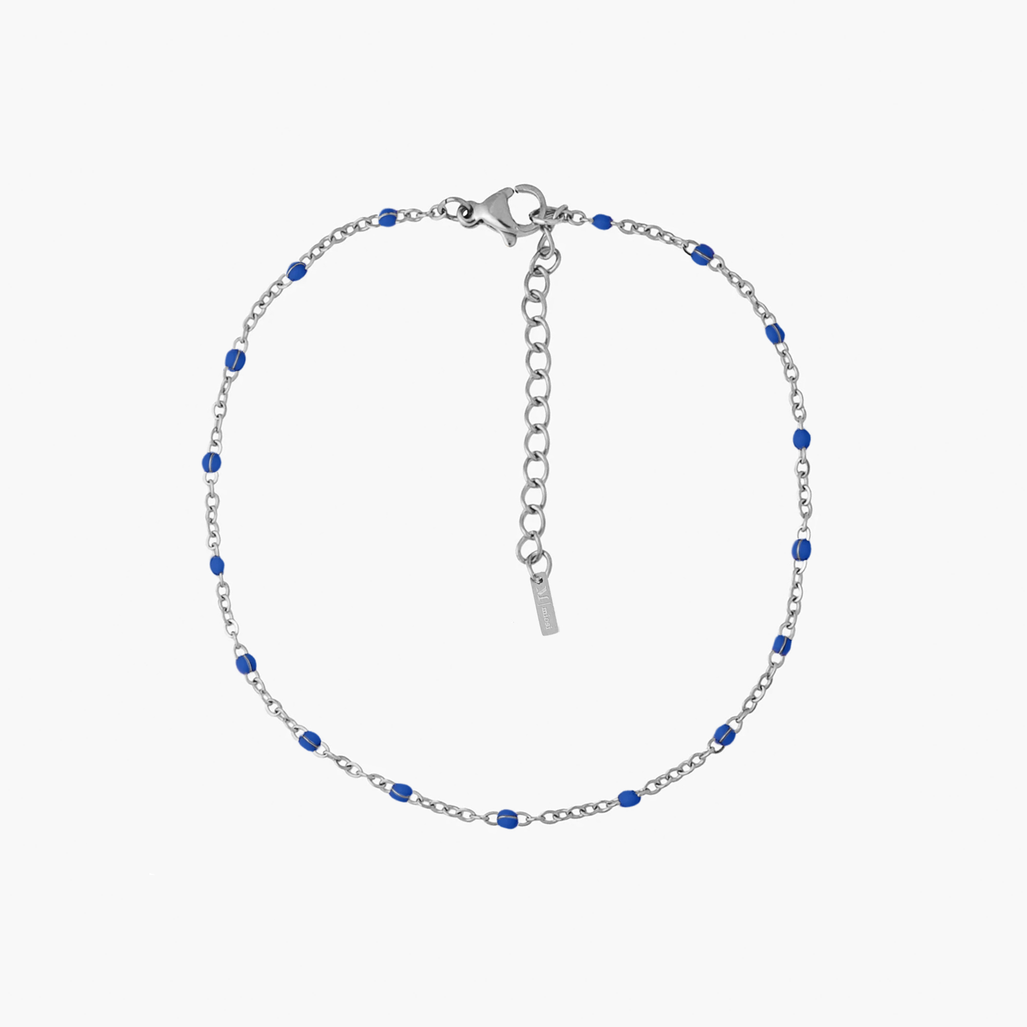 Bransoletka na nogę z niebieskimi koralikami srebrna