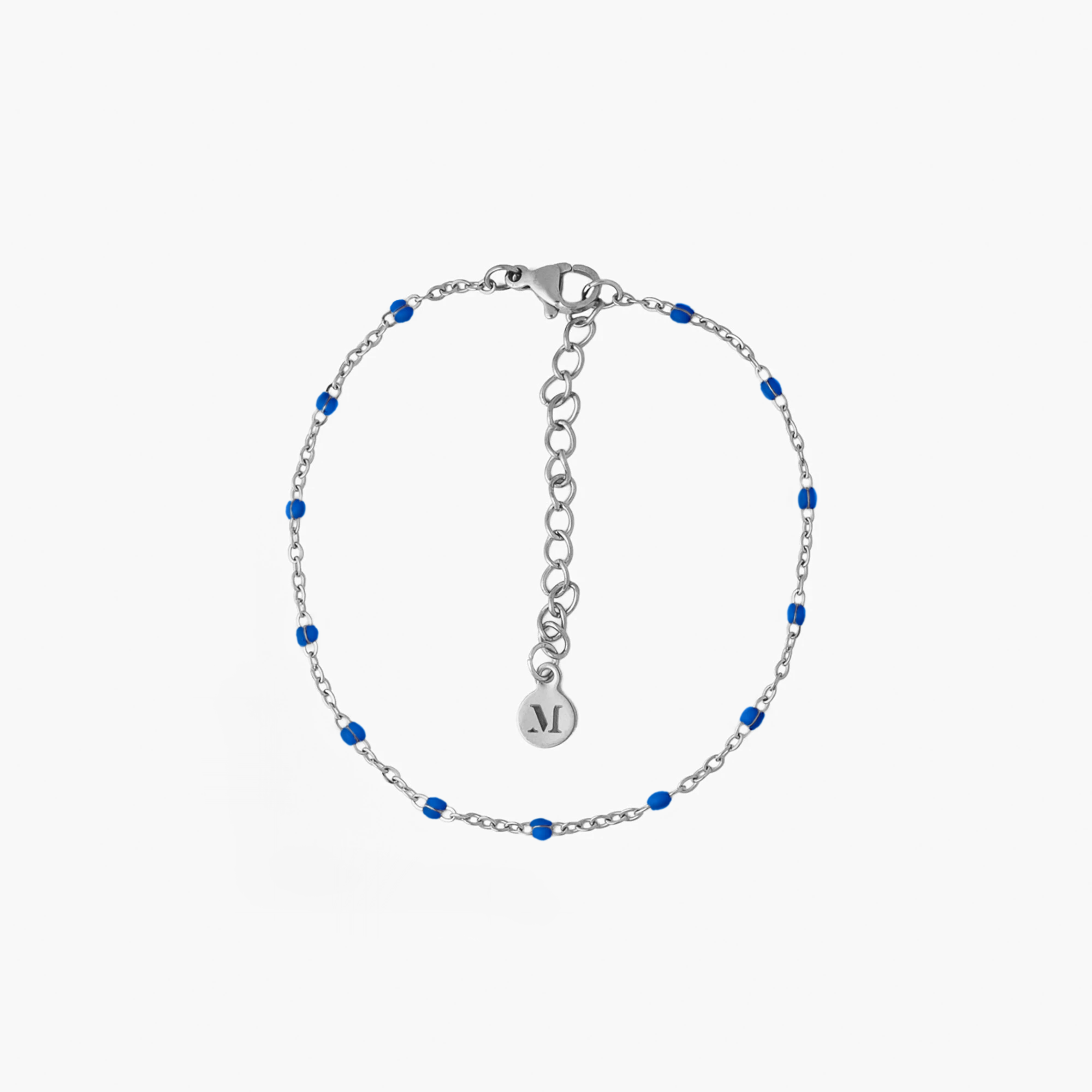 Bransoletka z koralikami niebieskimi srebrna
