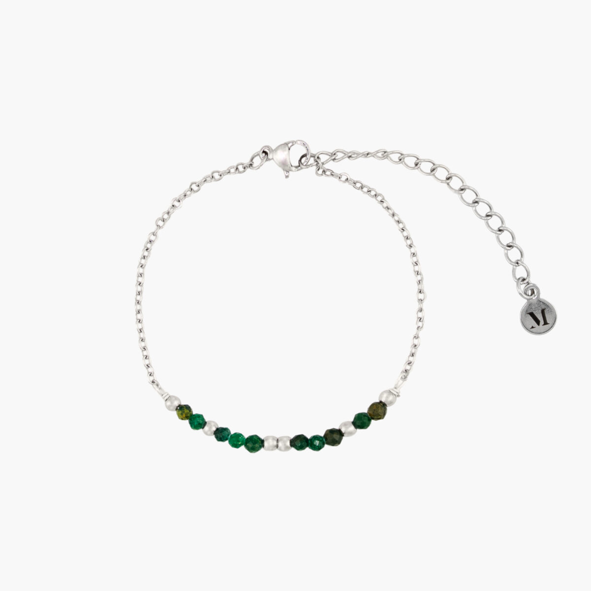 Malachit to kamień transformacji – dla kobiet, które nie boją się sięgać po więcej. Ta bransoletka wspiera w emocjonalnym oczyszczaniu, pomaga odciąć się od przeszłości i z odwagą spojrzeć w przyszłość. Wzmacnia intuicję i daje poczucie ochrony.