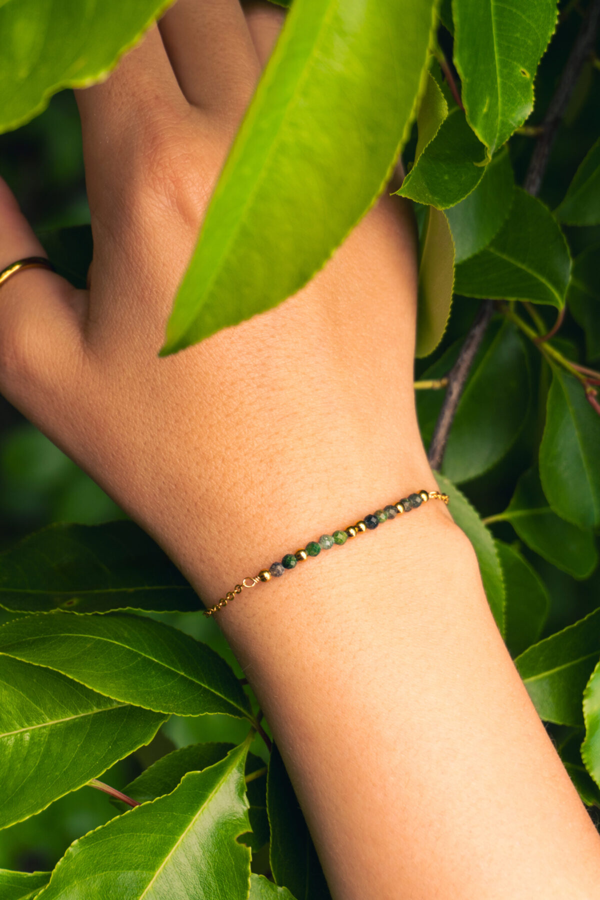Malachit to kamień transformacji – dla kobiet, które nie boją się sięgać po więcej. Ta bransoletka wspiera w emocjonalnym oczyszczaniu, pomaga odciąć się od przeszłości i z odwagą spojrzeć w przyszłość. Wzmacnia intuicję i daje poczucie ochrony.