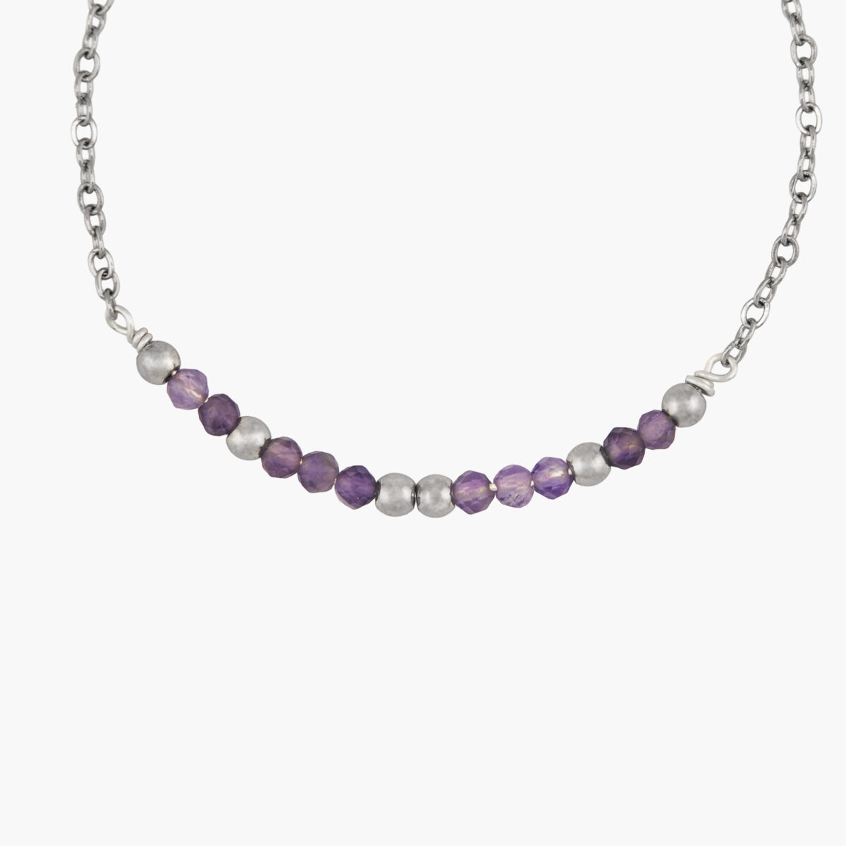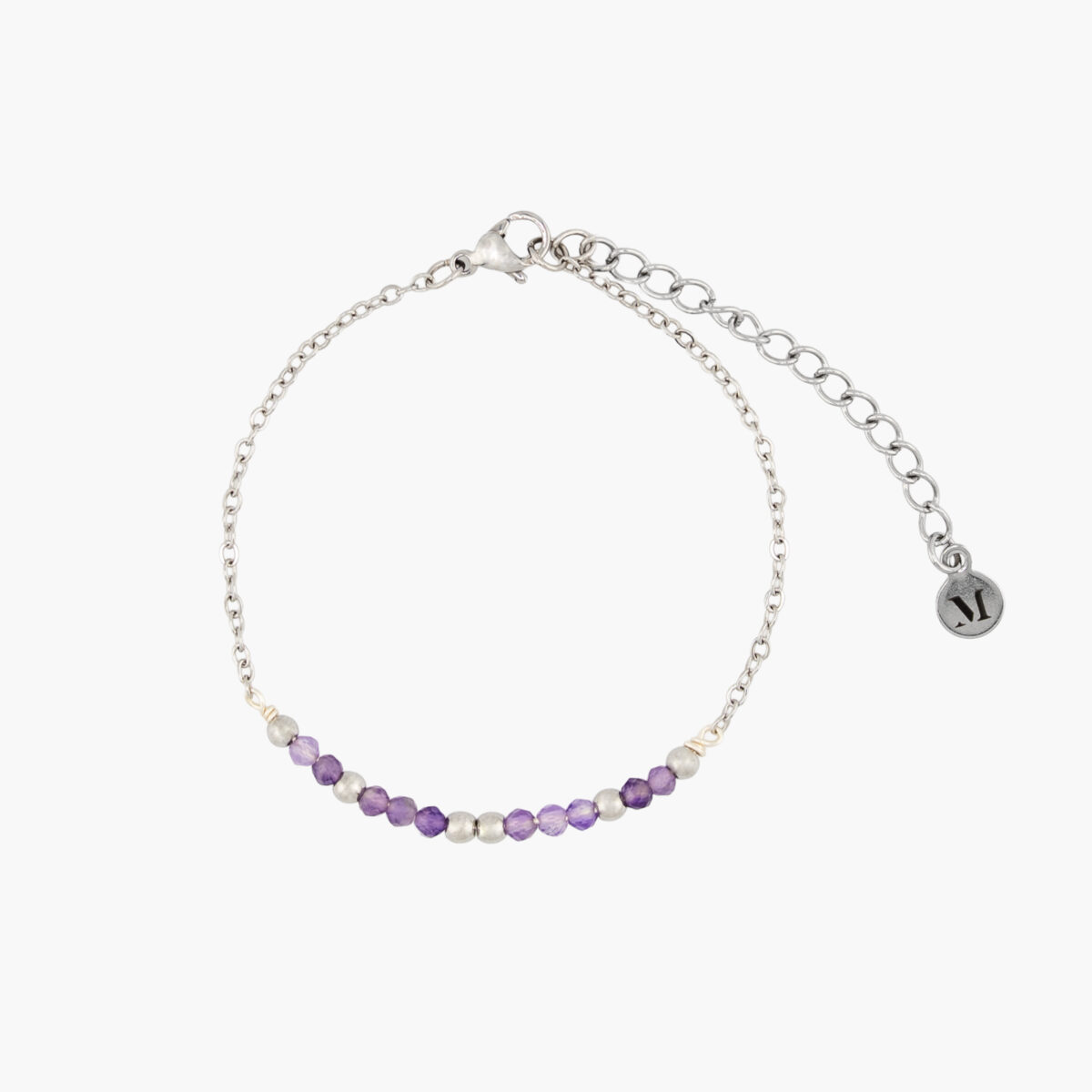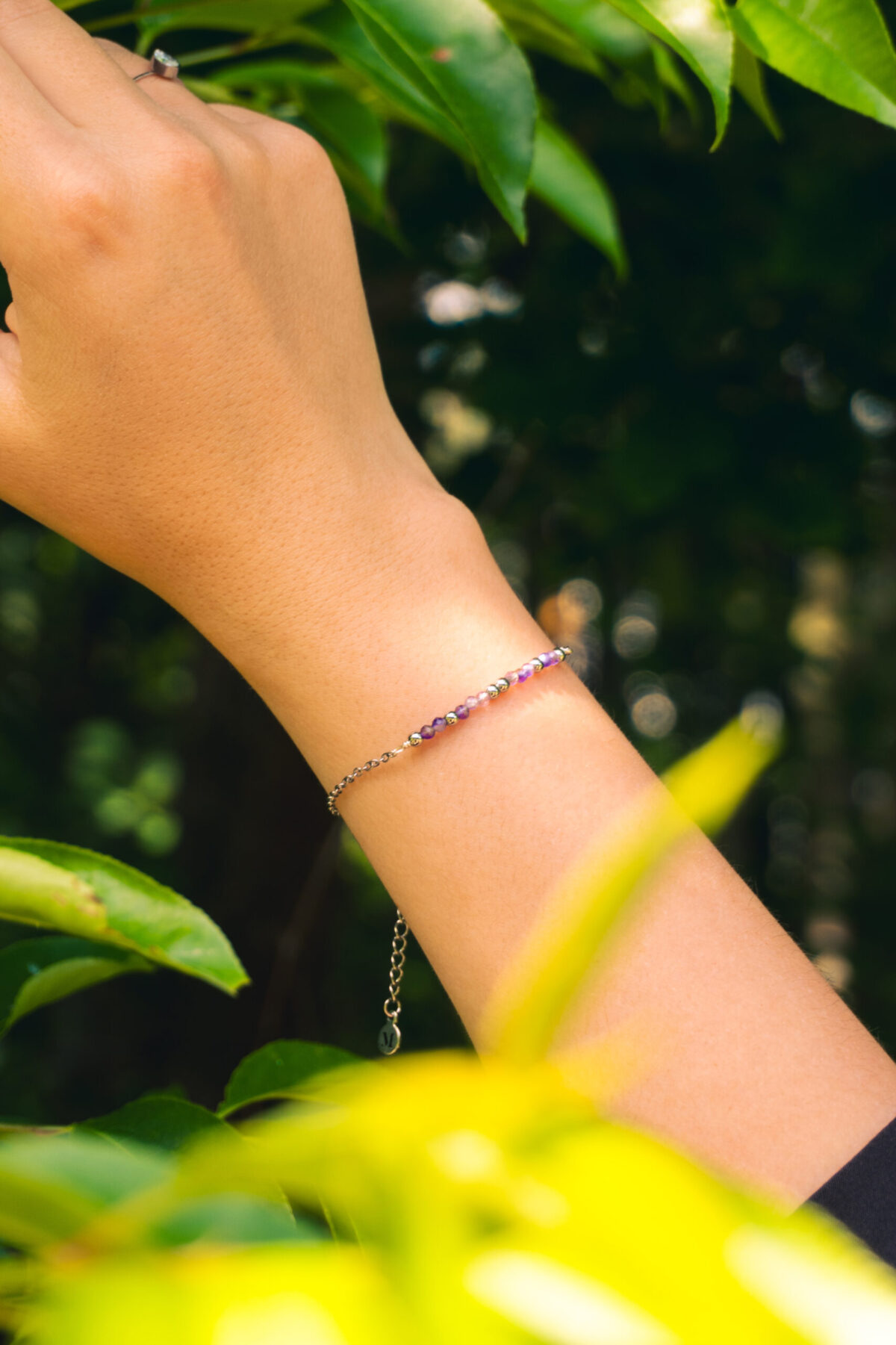 Subtelna bransoletka z ametystem to przypomnienie, że ukojenie jest zawsze bliżej, niż się wydaje. Kamień wspiera wewnętrzny spokój, redukuje stres i sprzyja duchowemu rozwojowi.