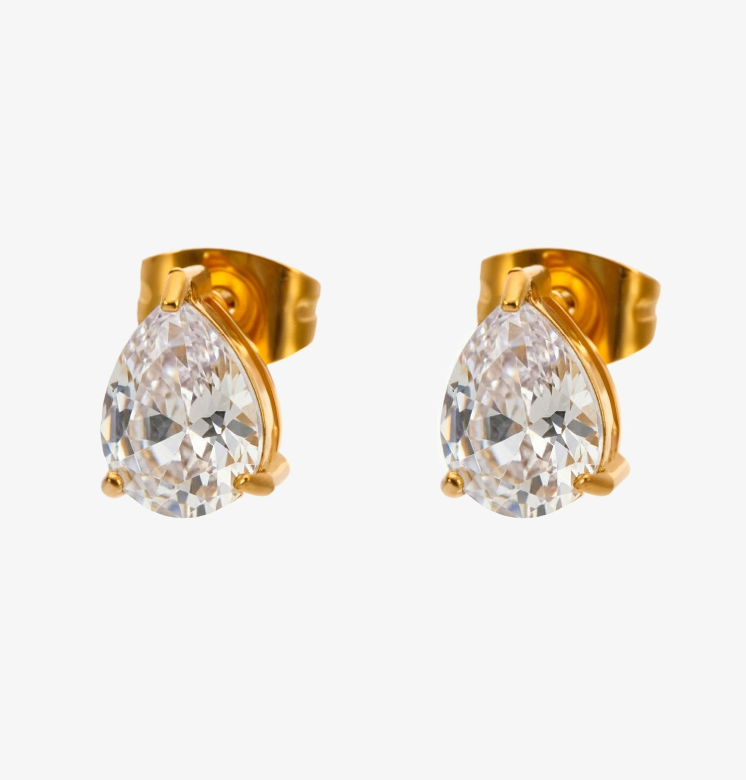 Kolczyki z białym kryształem łezka złote