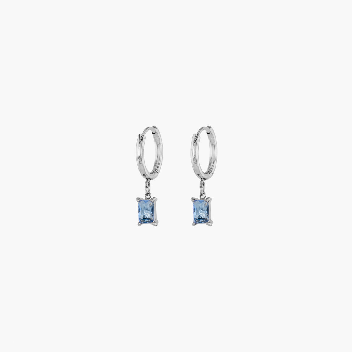 Kolczyki z kryształem prostokątnym niebieskim srebrne