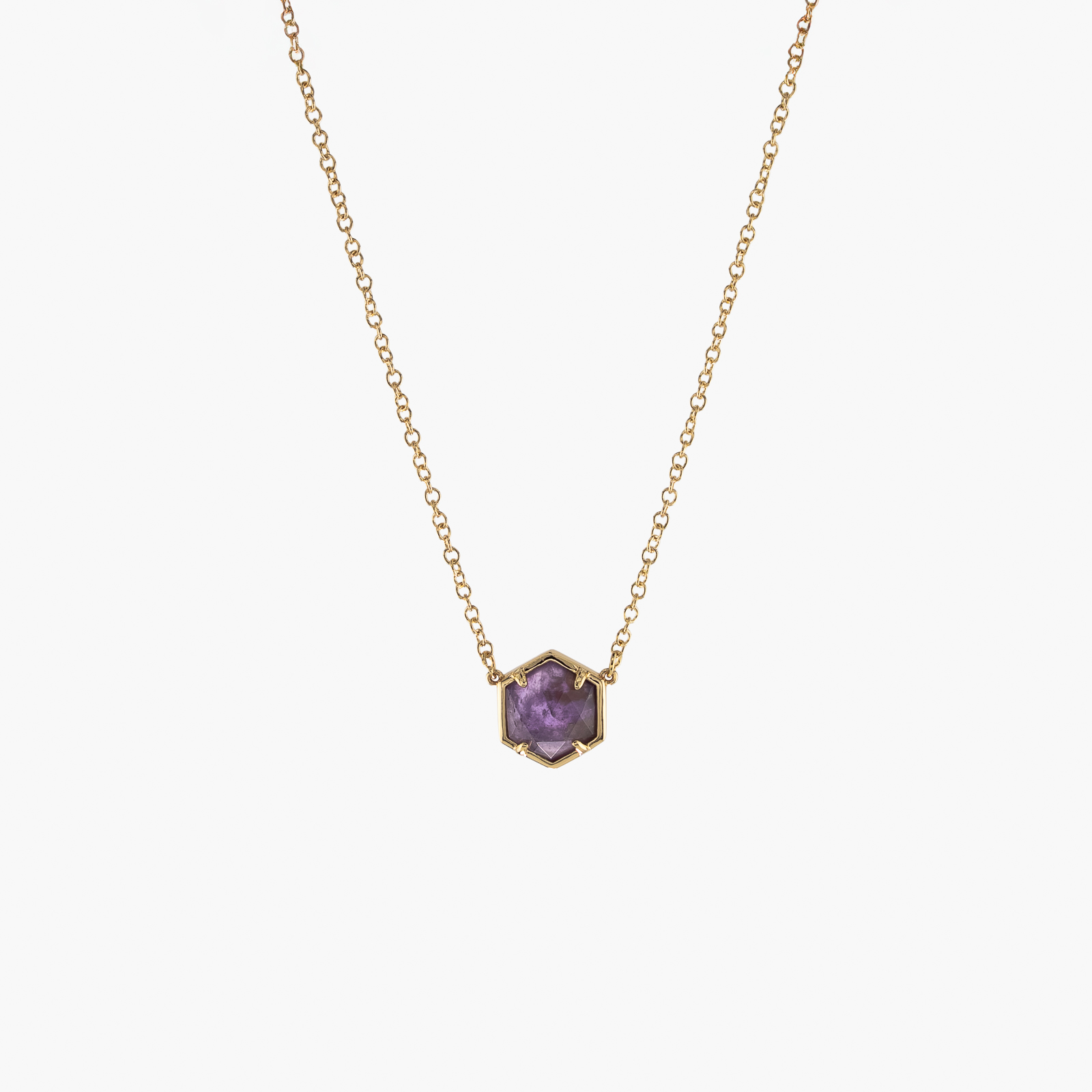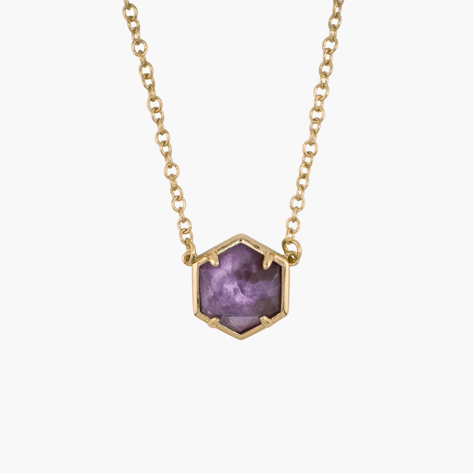 Naszyjnik heksagon ametyst złoty