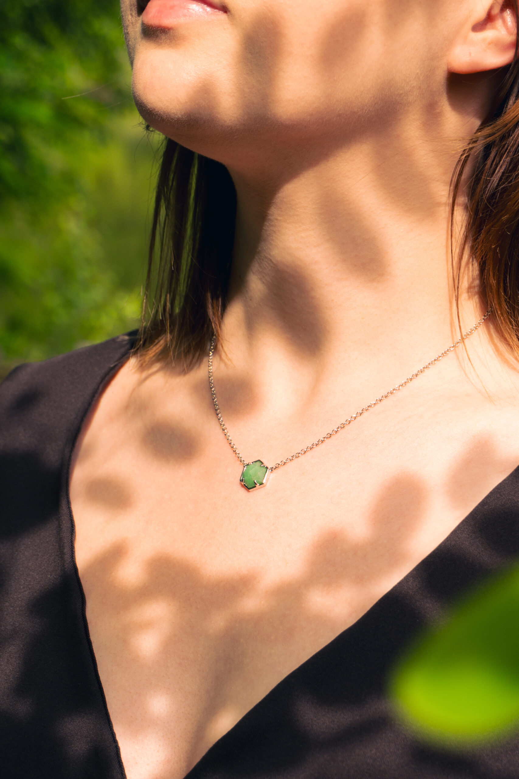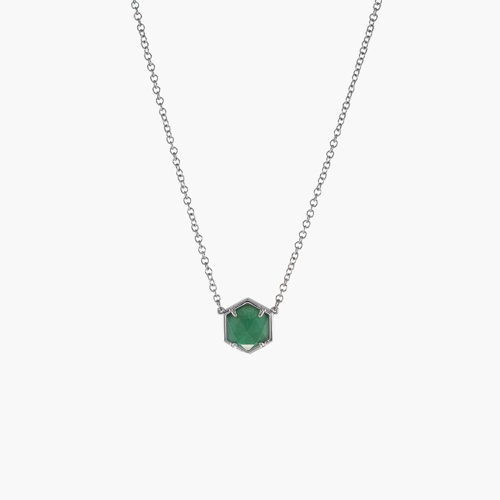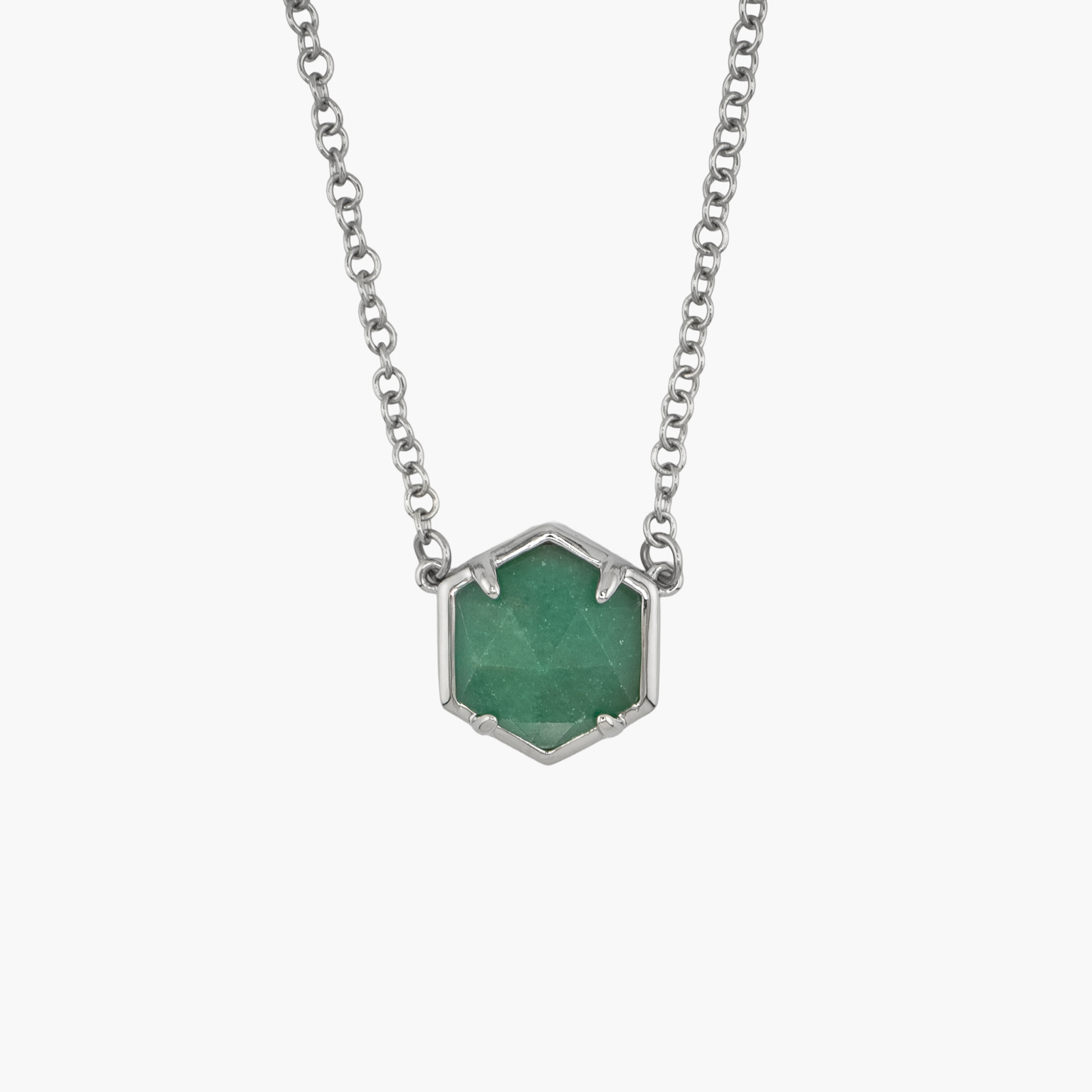 Naszyjnik heksagon kwarc zielony srebrny