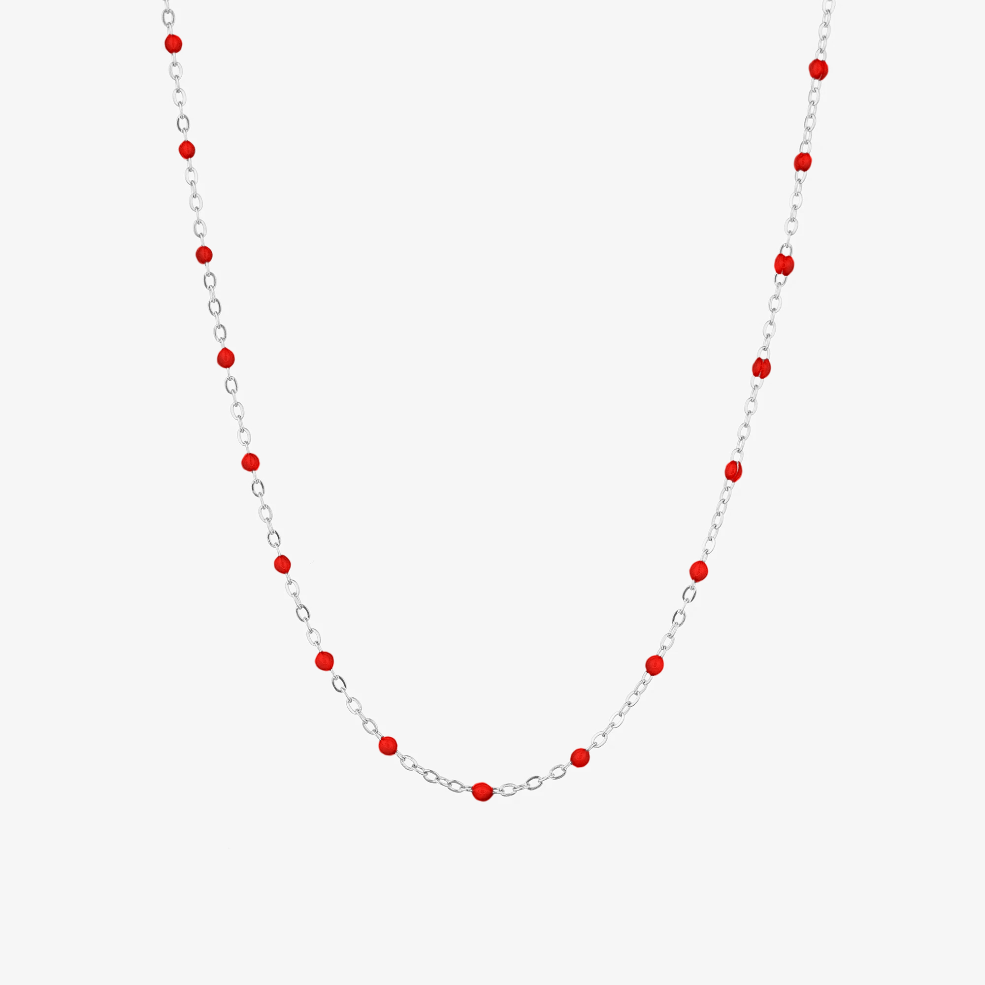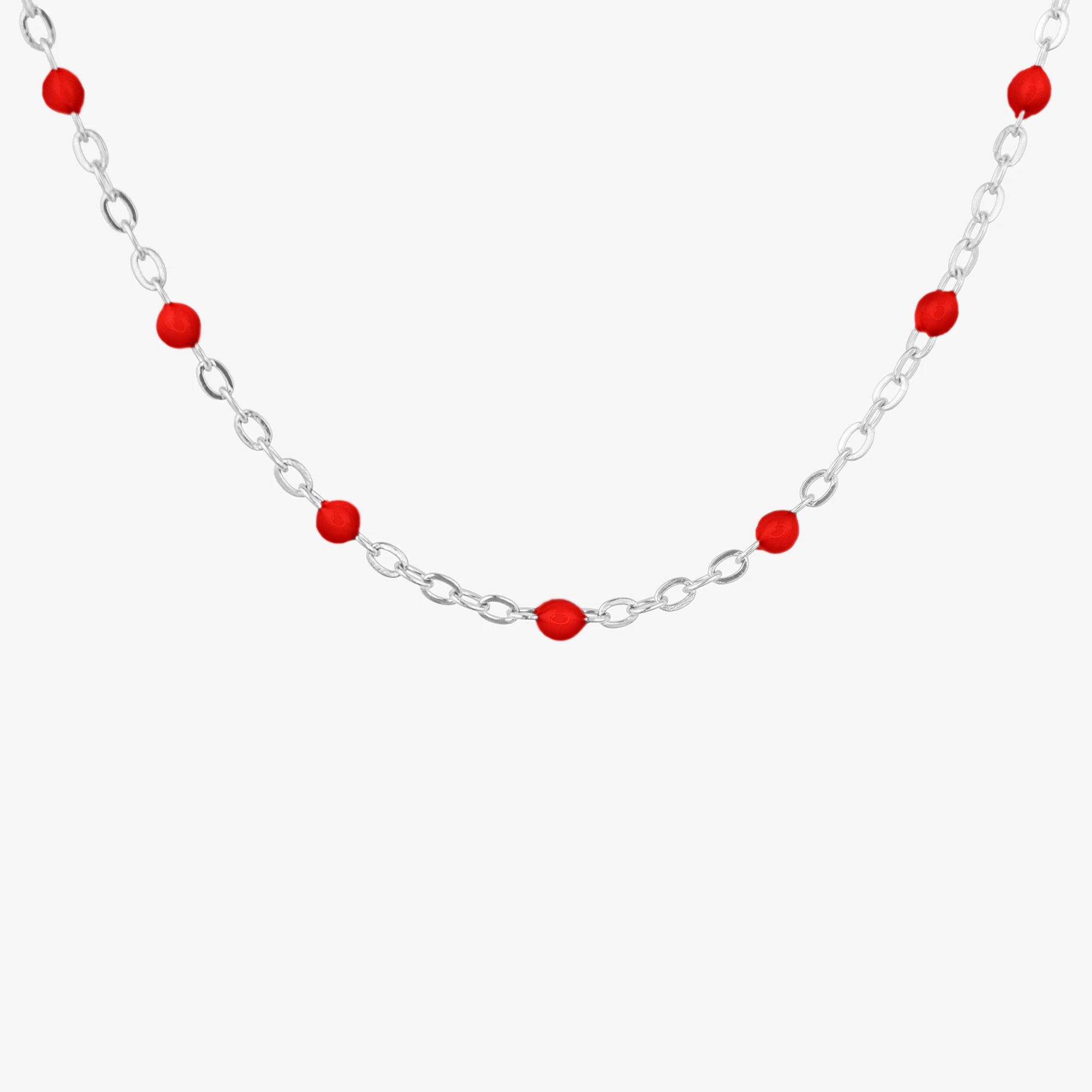 Naszyjnik z koralikami czerwonymi srebrny