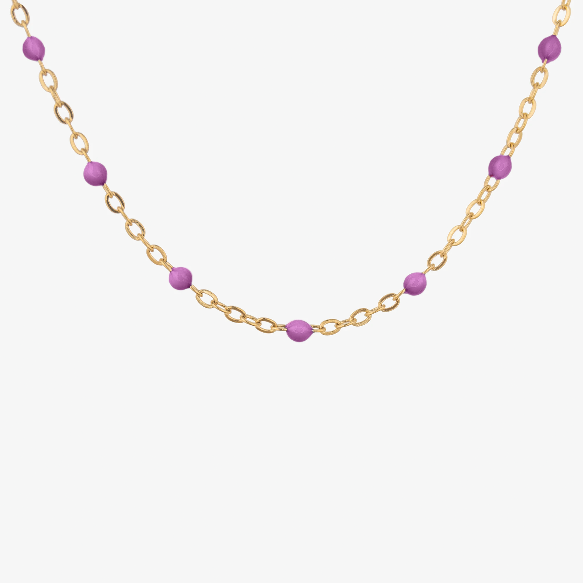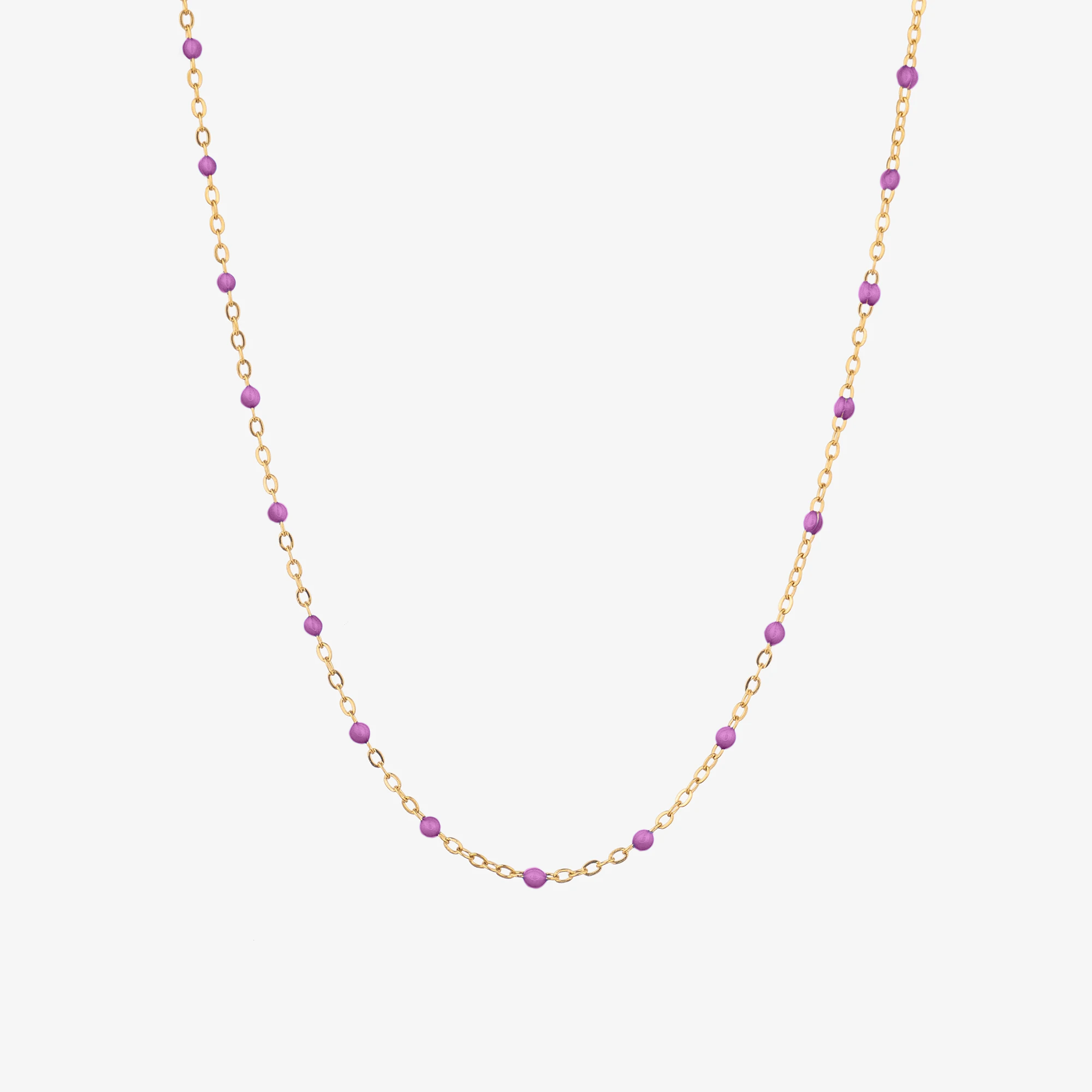 Naszyjnik z koralikami fioletowymi złoty