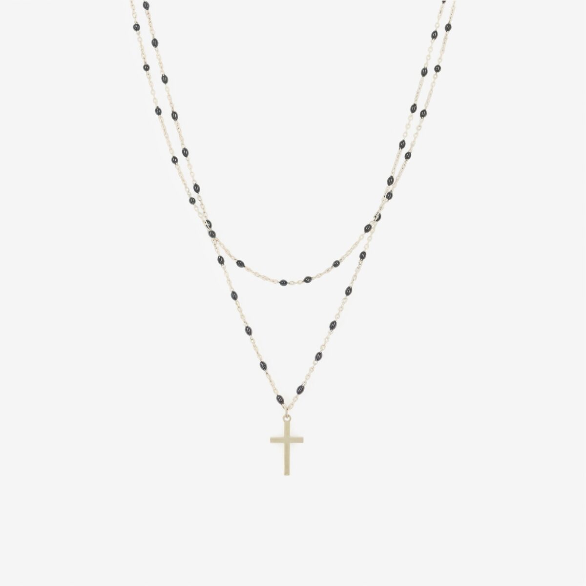Naszyjnik z koralikami i krzyżykiem złoty
