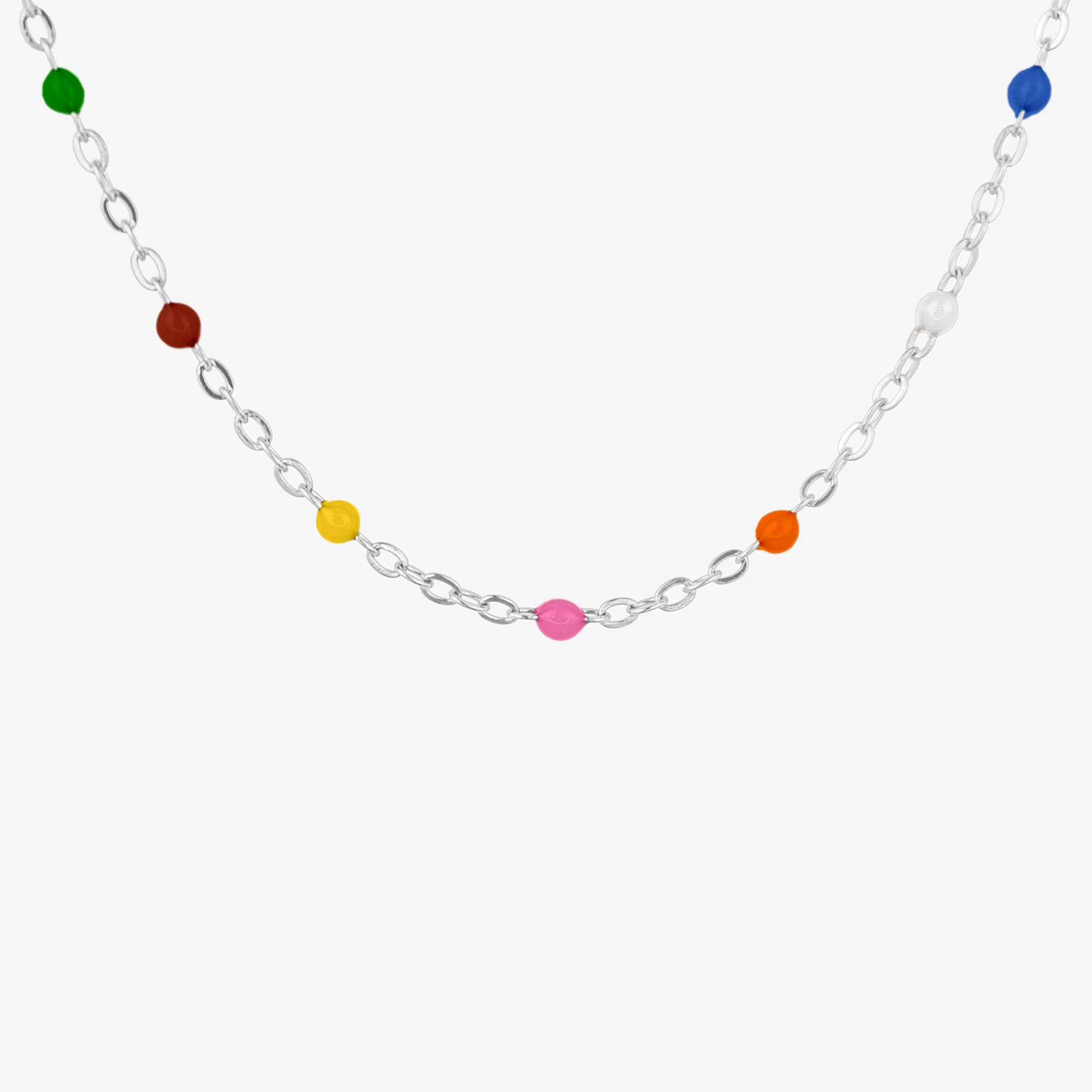 Naszyjnik z koralikami kolorowymi srebrny