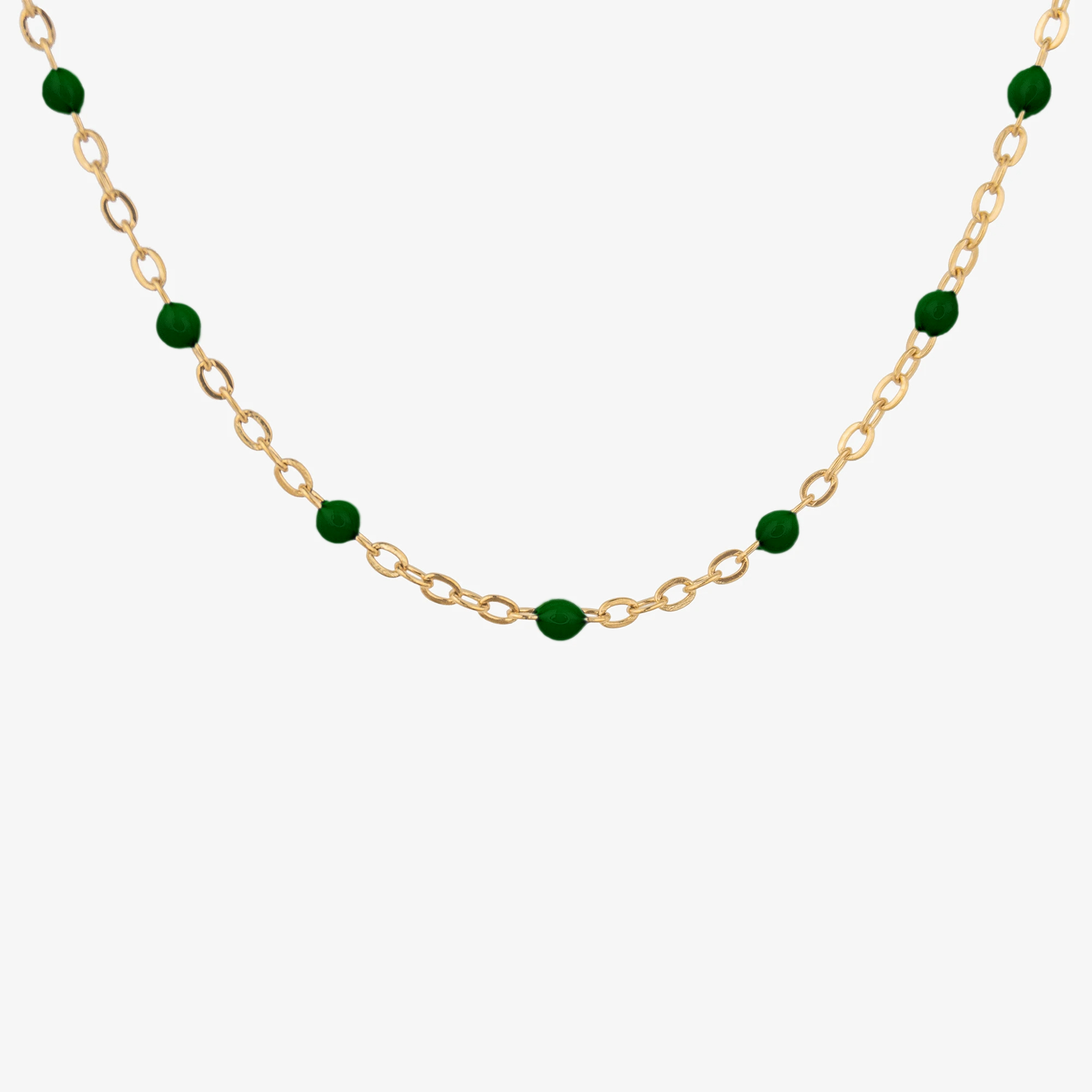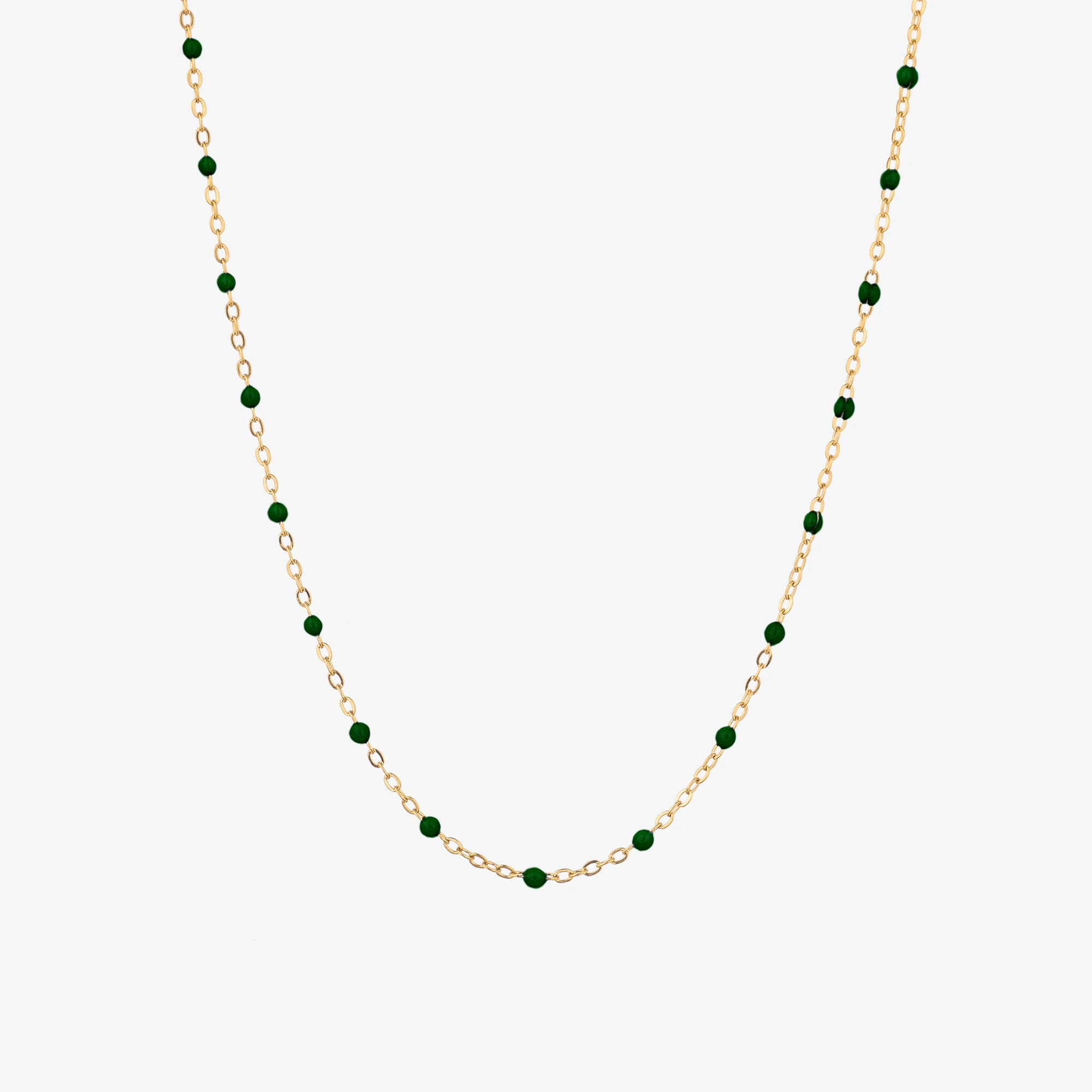 Naszyjnik z koralikami zielonymi złoty