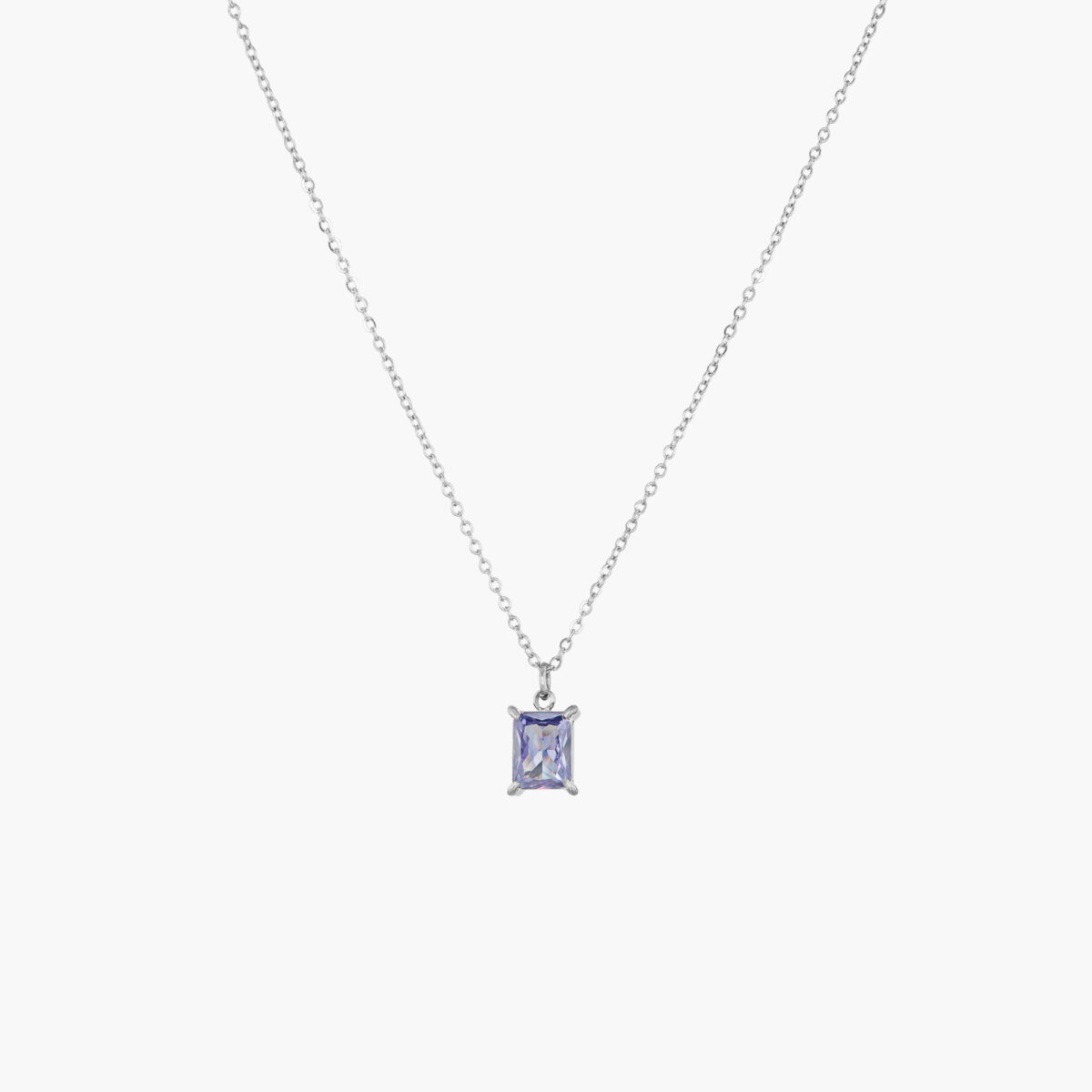 Naszyjnik z kryształem prostokątnym liliowym srebrny
