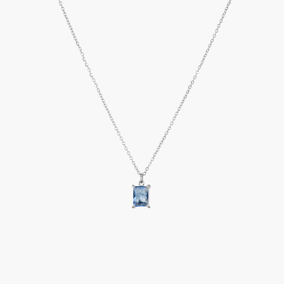 Naszyjnik z kryształem prostokątnym niebieskim srebrny