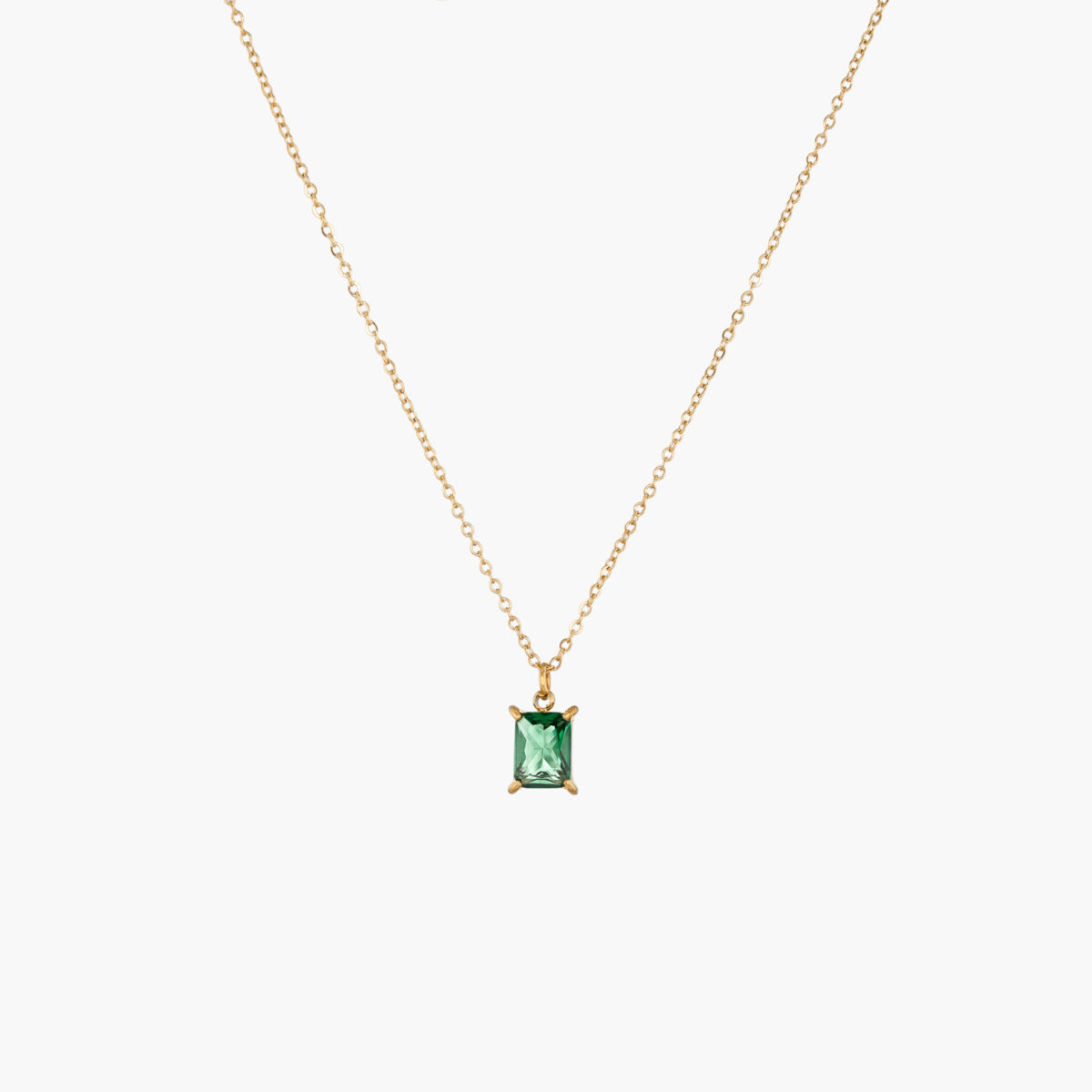 Naszyjnik z kryształem prostokątnym zielonym złoty