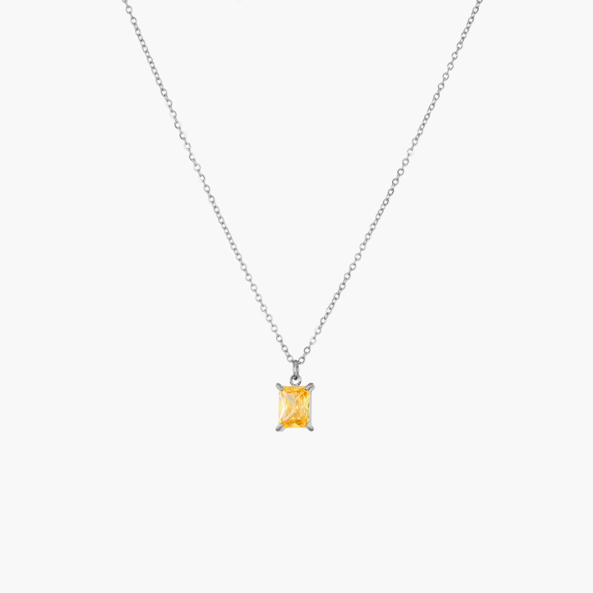 Naszyjnik z kryształem prostokątnym żółtym srebrny