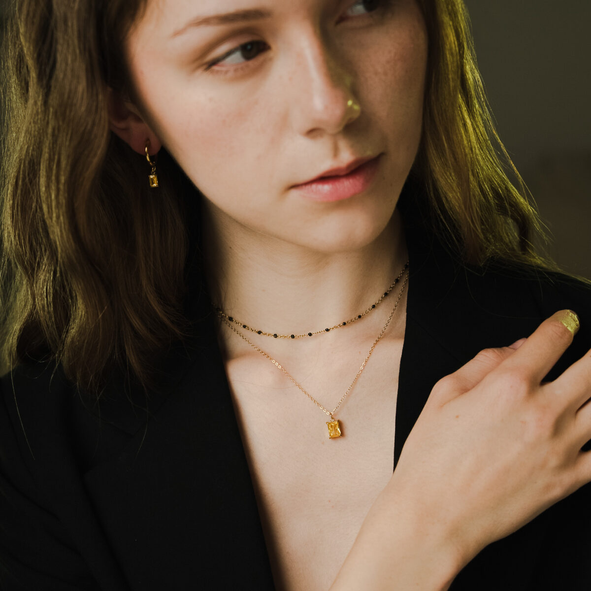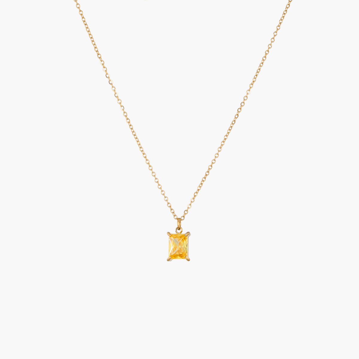 Naszyjnik z kryształem prostokątnym żółtym złoty