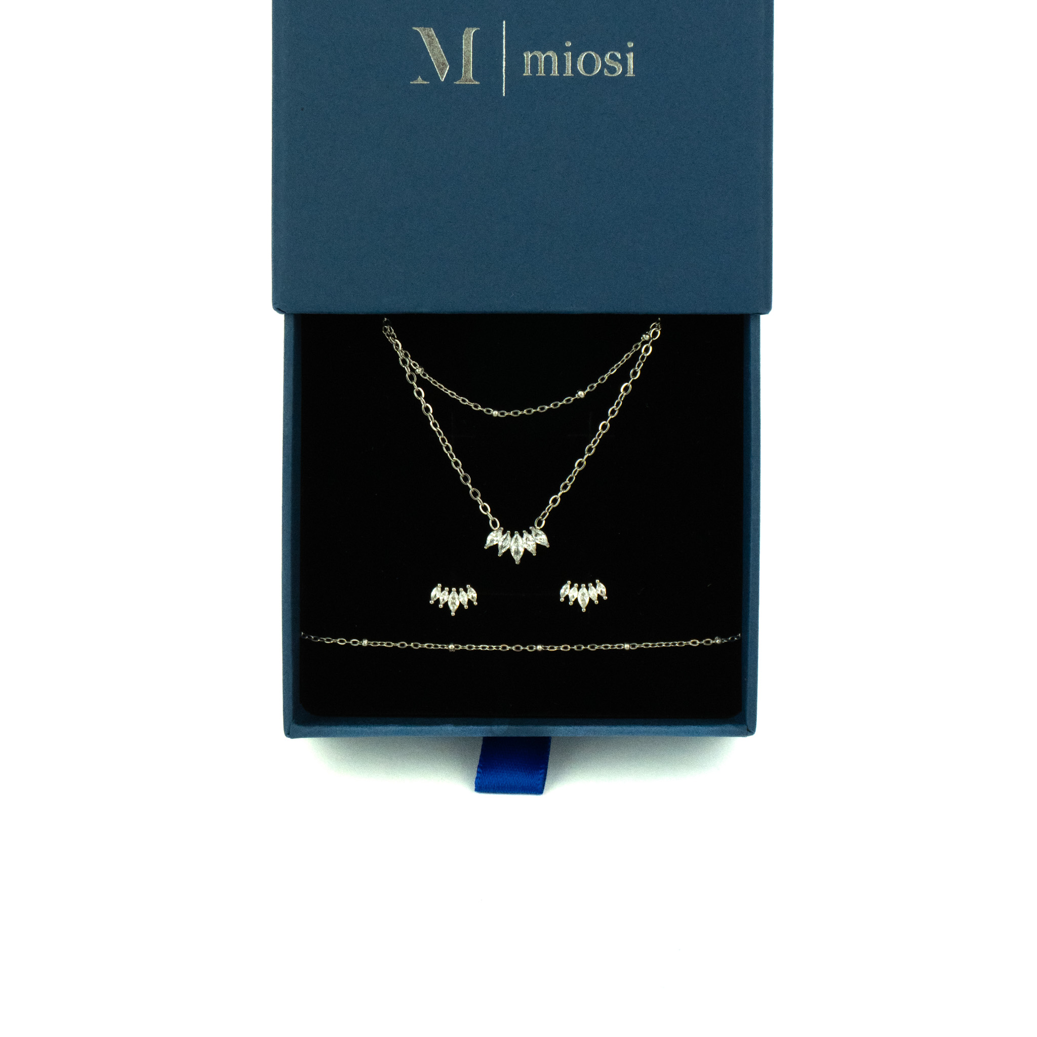 Zestaw z cyrkoniami i łańcuszkami srebrny