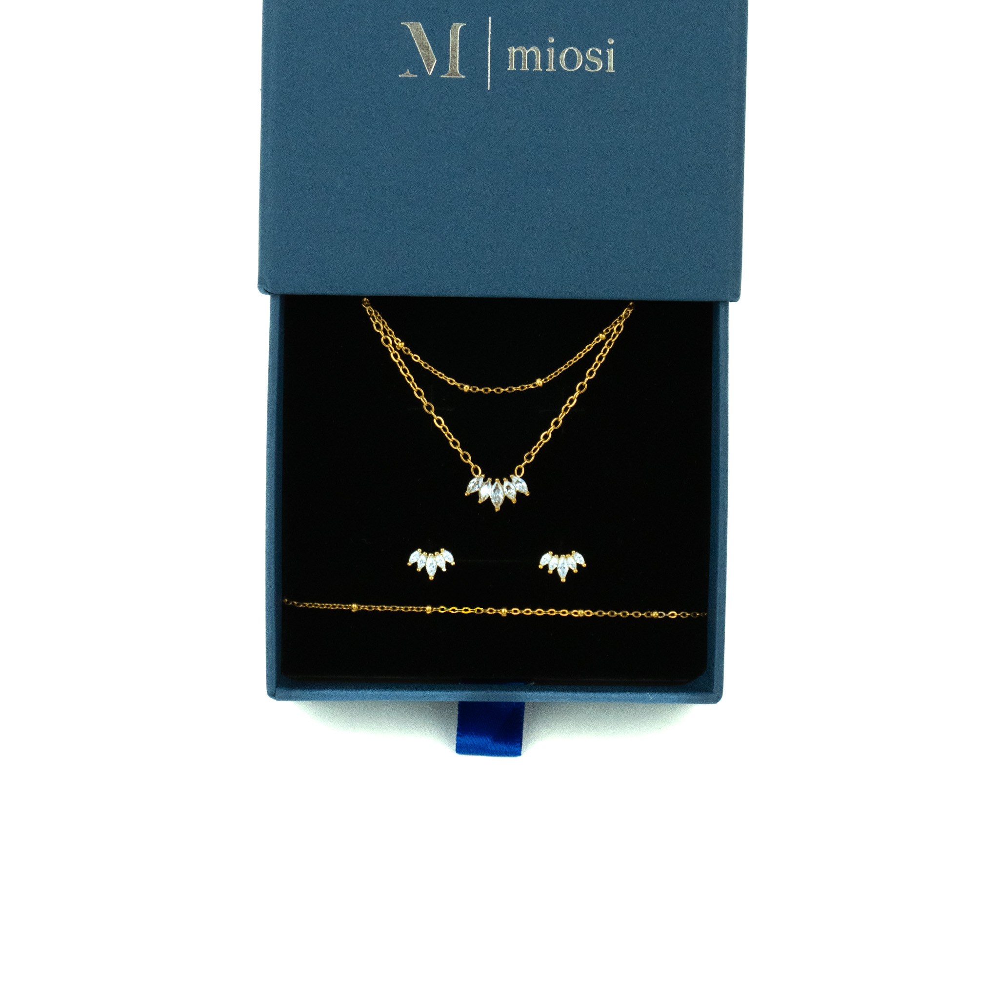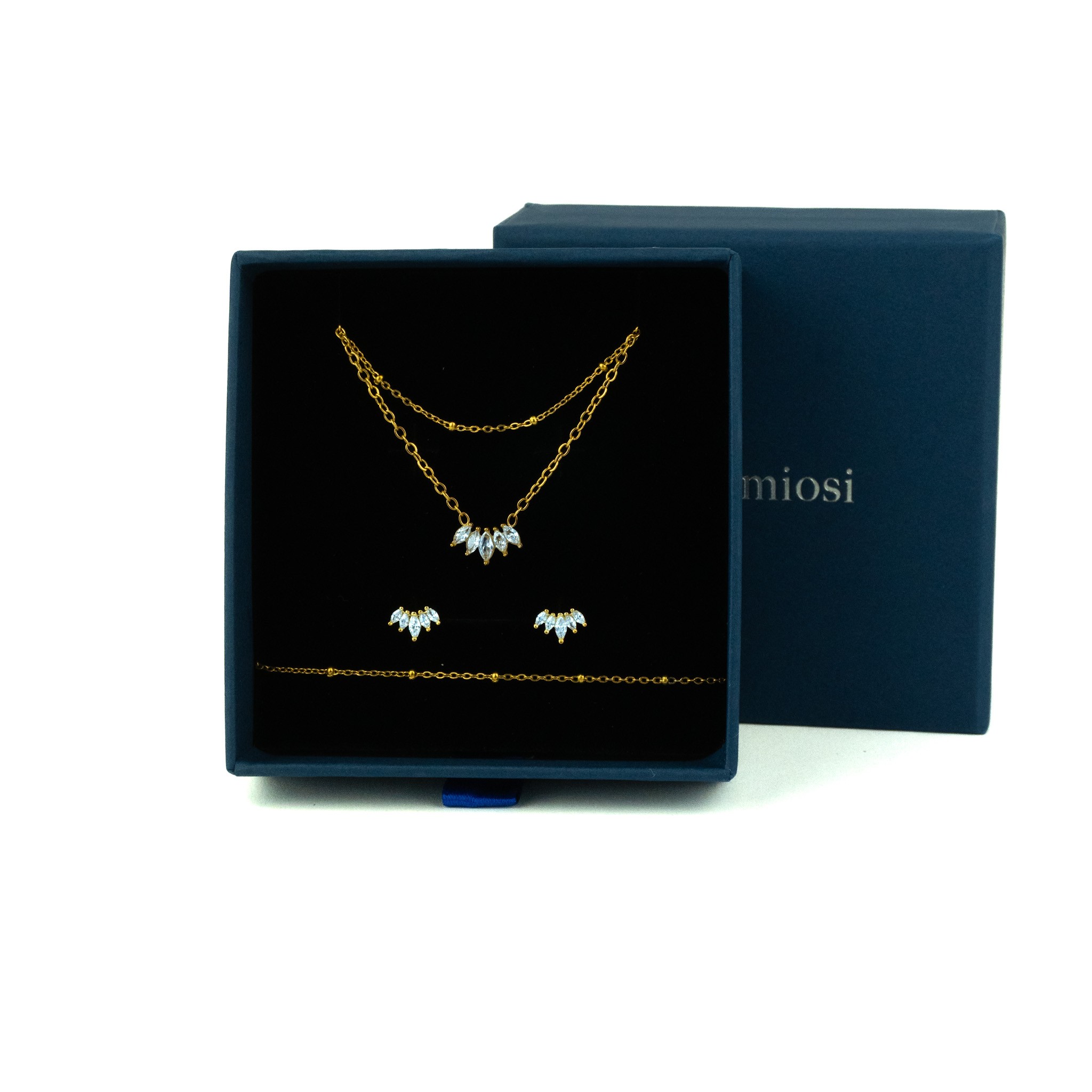 Zestaw z cyrkoniami i łańcuszkami złoty