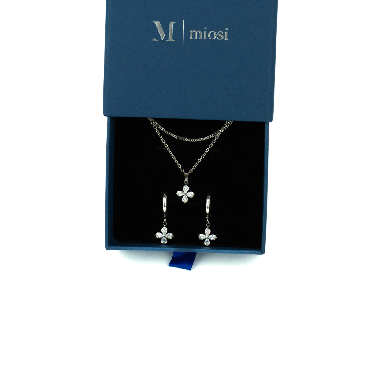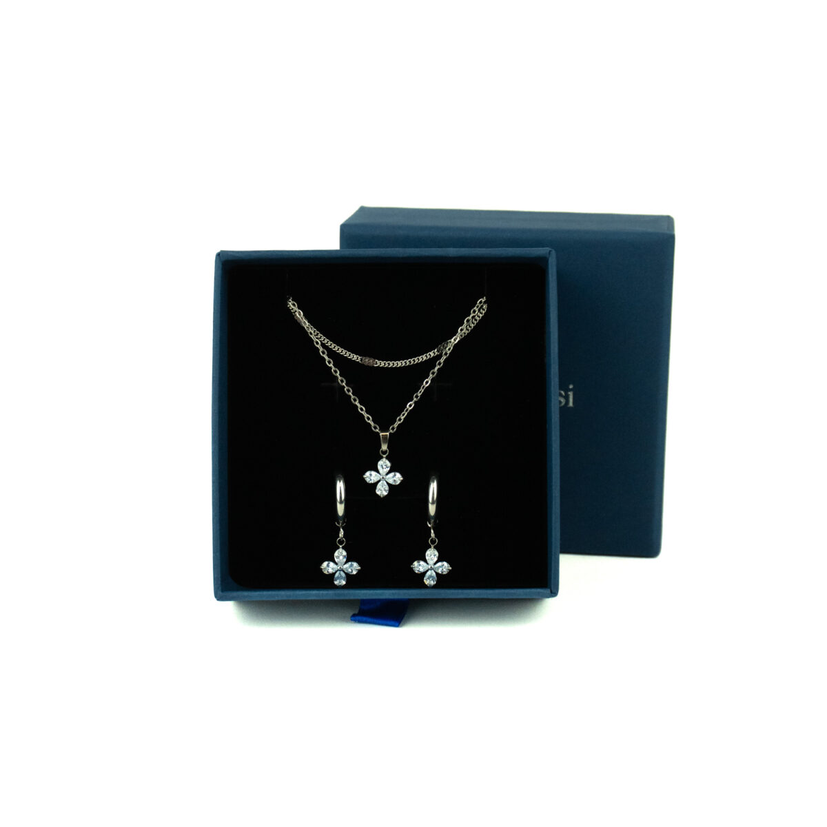 Zestaw z koniczynką i łańcuszkiem srebrny