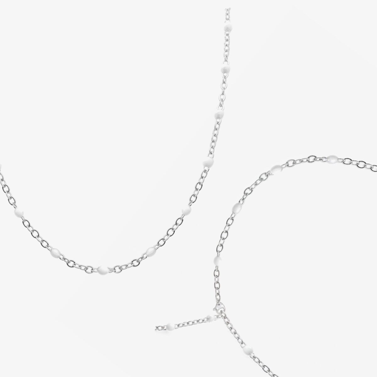 Ten zestaw biżuterii sprawdzi się idealnie dla kobiety, która lubi minimalistyczną i delikatną biżuterię. Zestaw z koralikami białymi to niezwykle subtelny wybór. Dodatkowo dołączamy przedłużkę, dzięki czemu możesz być pewien, że długość naszyjnika będzie idealna!