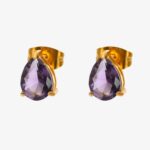 Pierścionek z kryształowym kwiatkiem fioletowym złoty