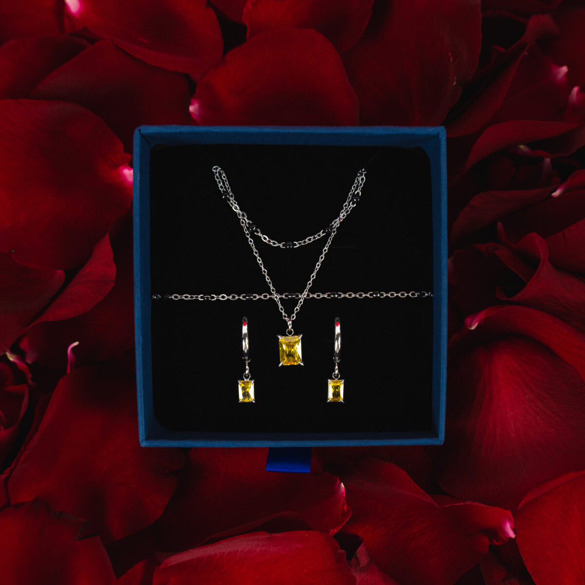 Zestaw z kryształem i koralikami czarno-żółty srebrny