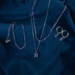Zestaw z kryształem i koralikami fioletowy srebrny