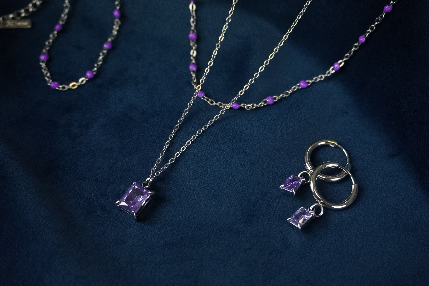 1 × Naszyjnik z koralikami fioletowymi srebrny