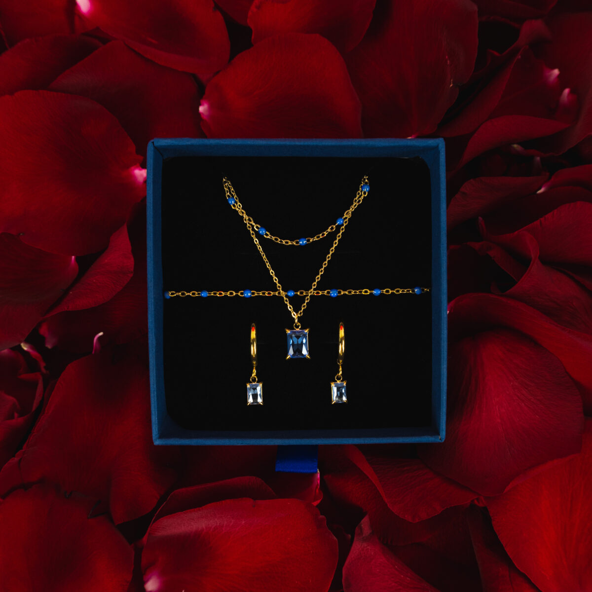 Zestaw z kryształem i koralikami niebieski złoty