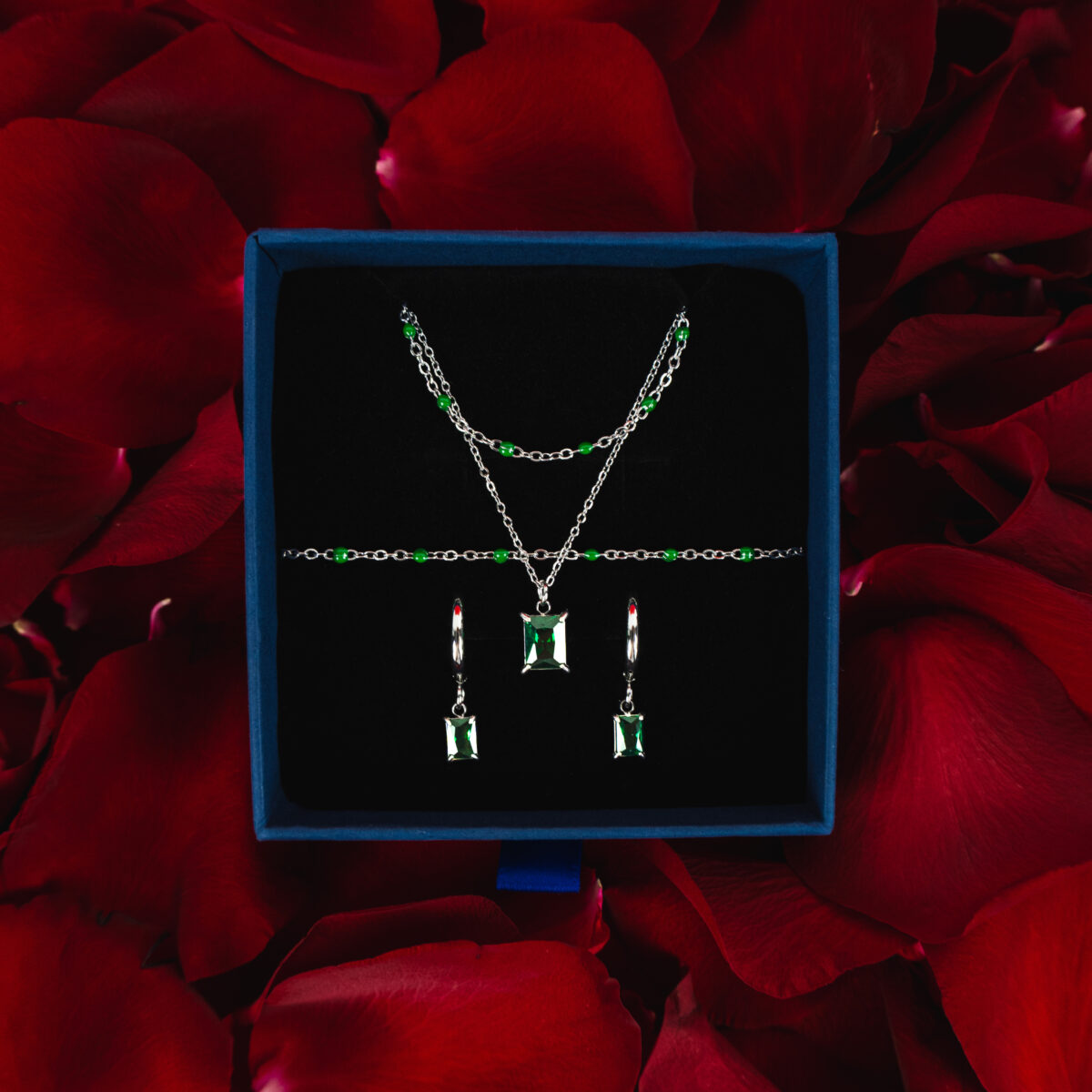 Zestaw z kryształem i koralikami zielony srebrny