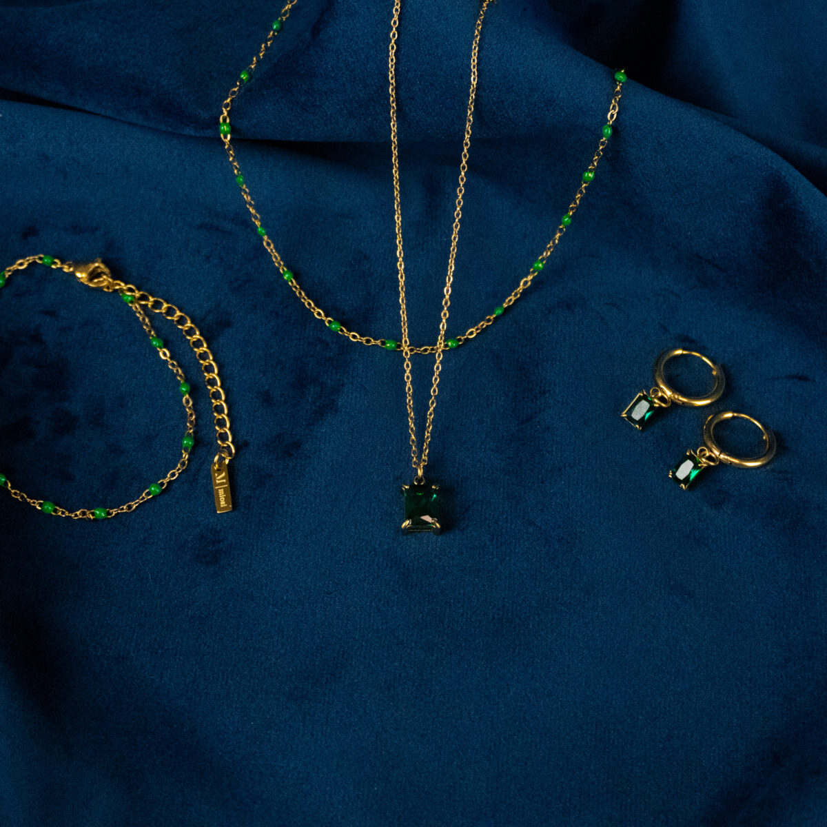 Zestaw z kryształem i koralikami zielony złoty