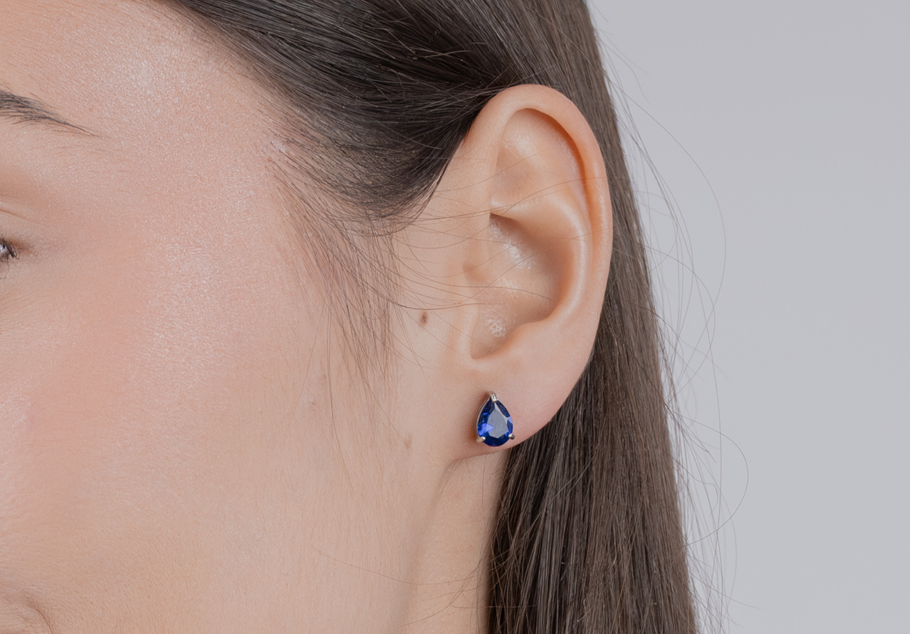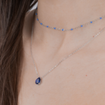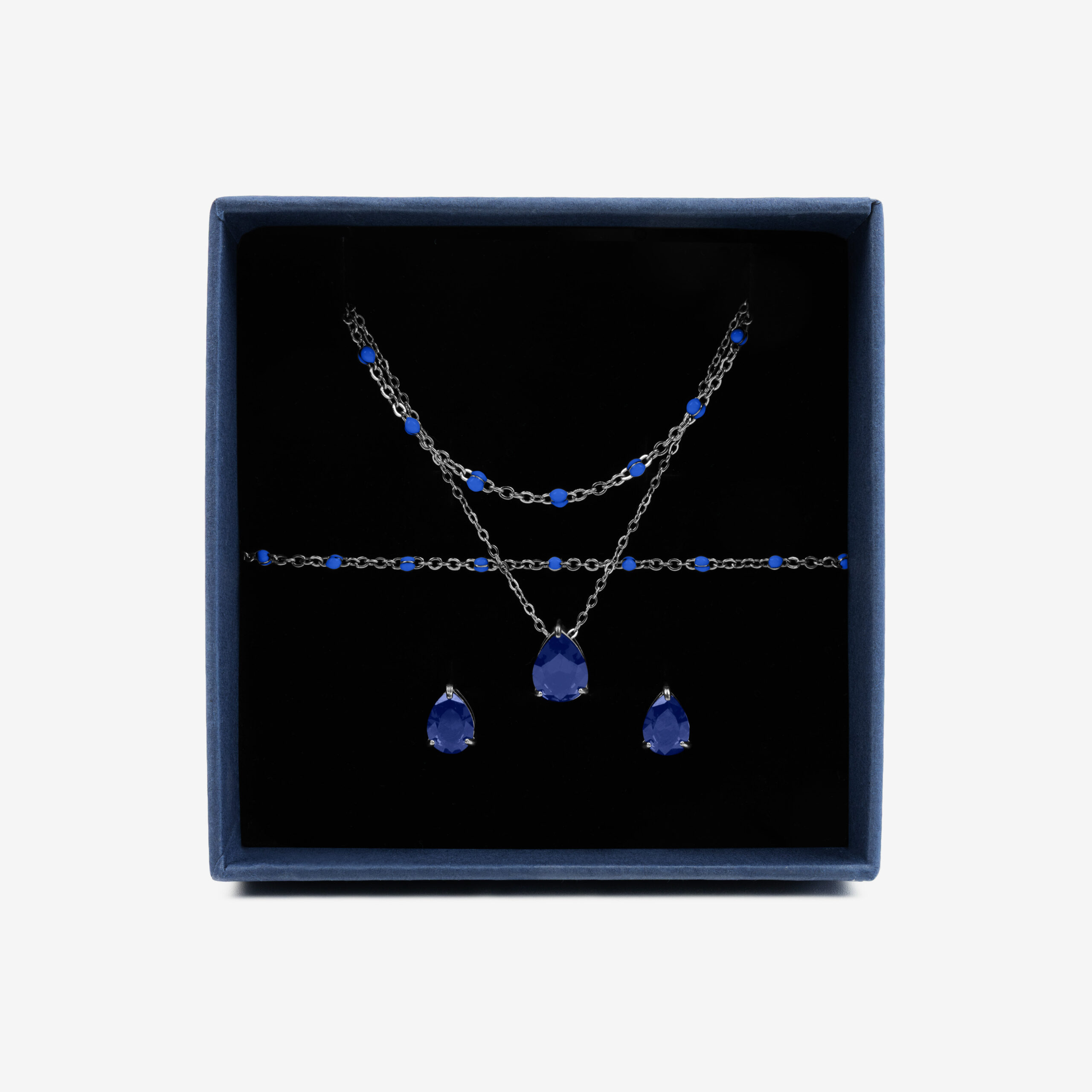 Zestaw z kryształem łezką granatowy i koralikami srebrny