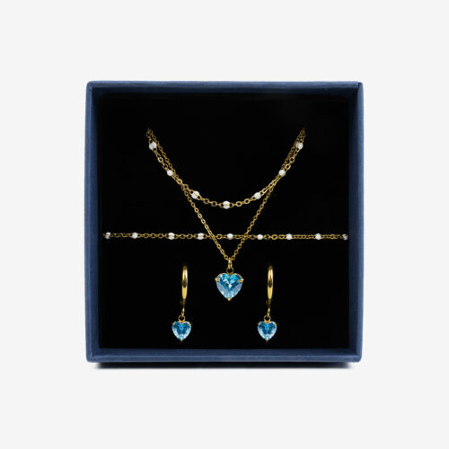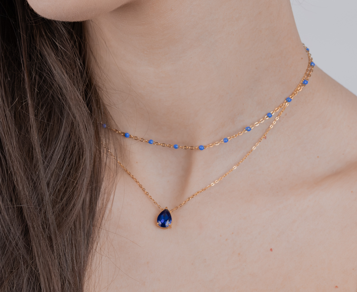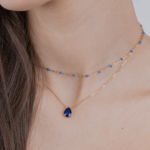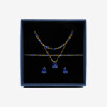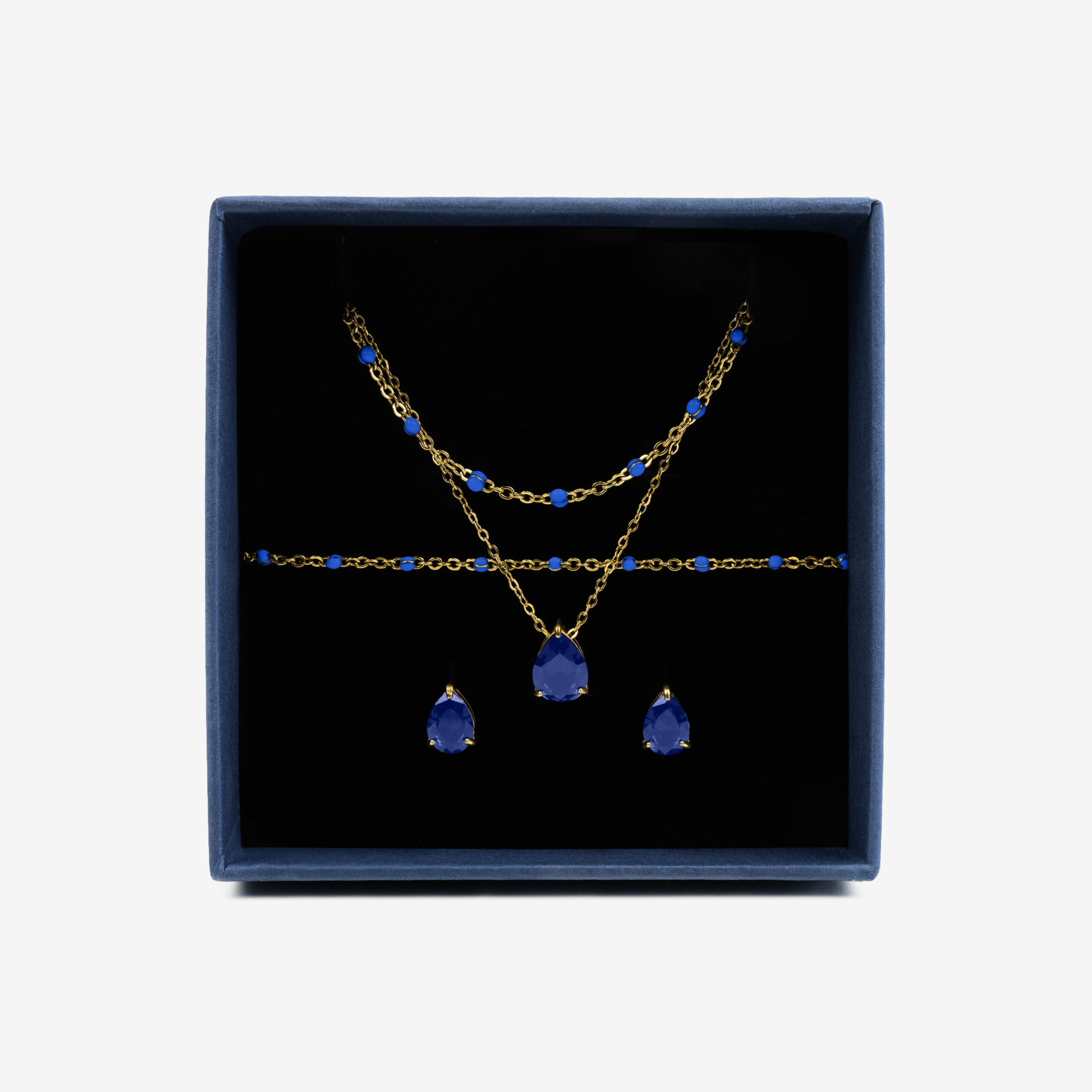 Zestaw z kryształem łezką granatowy i koralikami złoty
