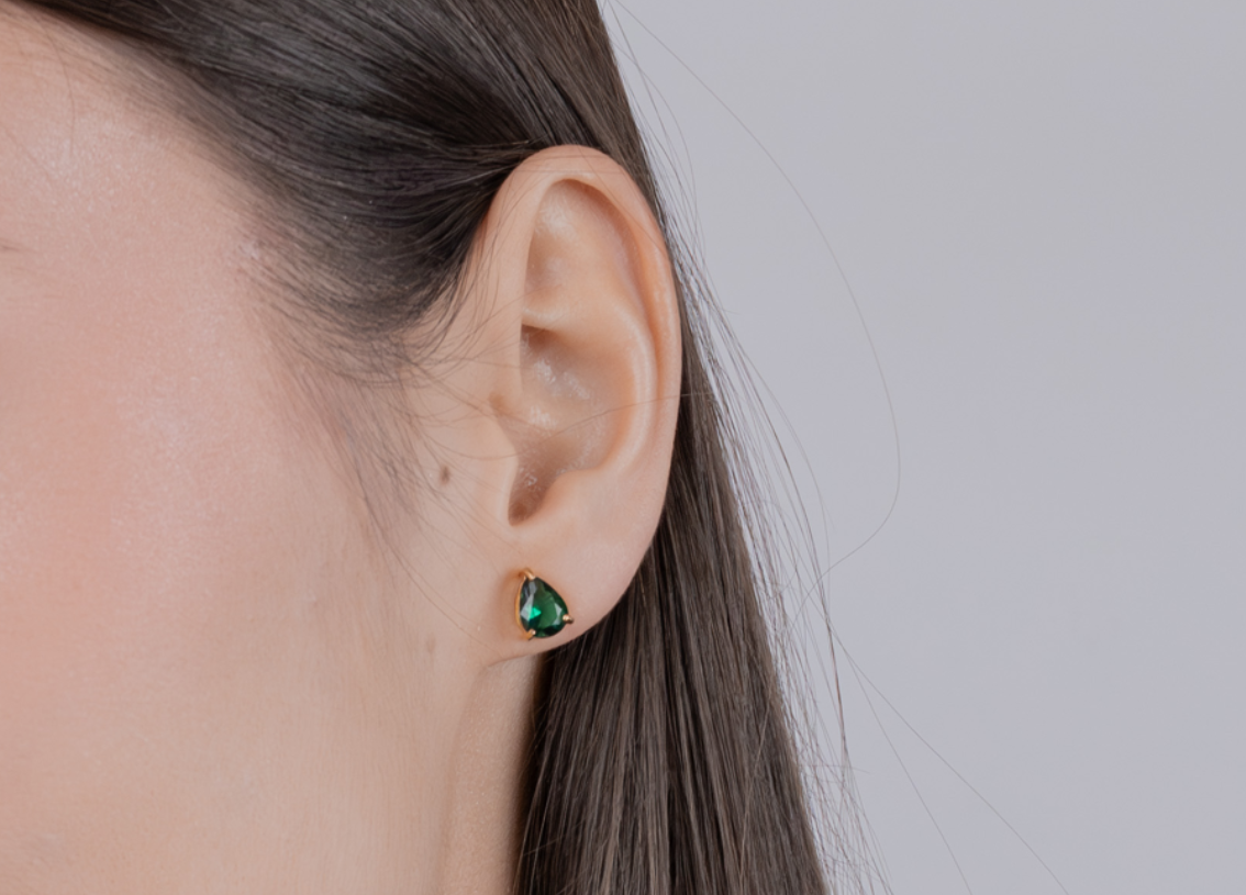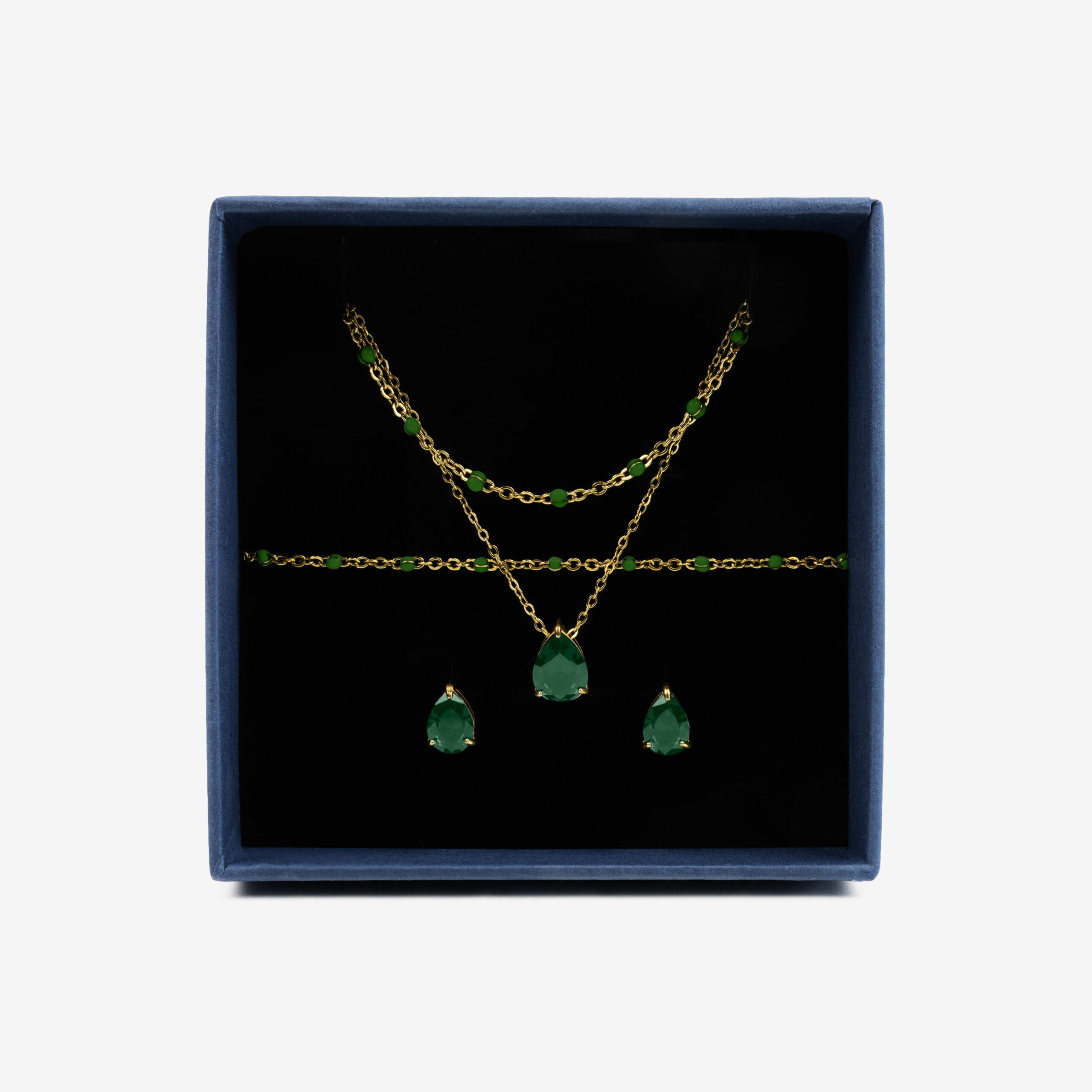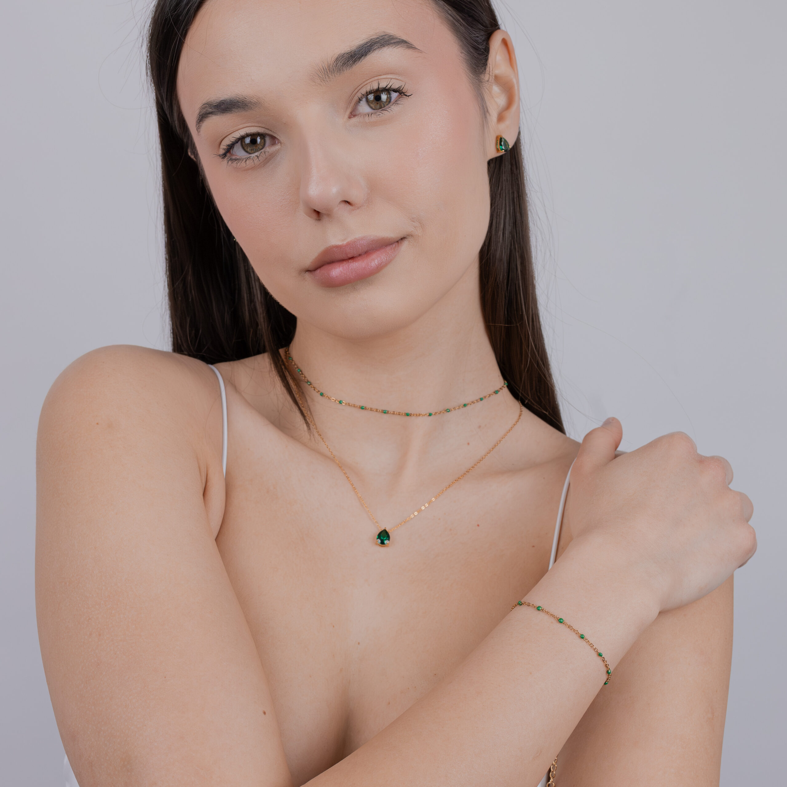 Zestaw z kryształem łezką zielony i koralikami złoty