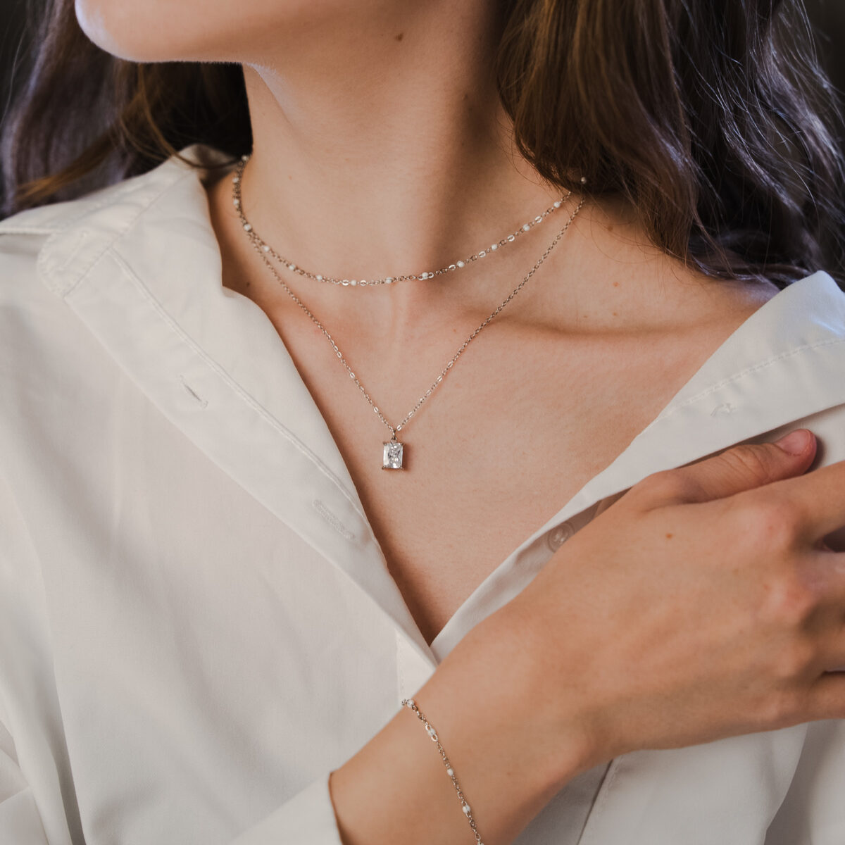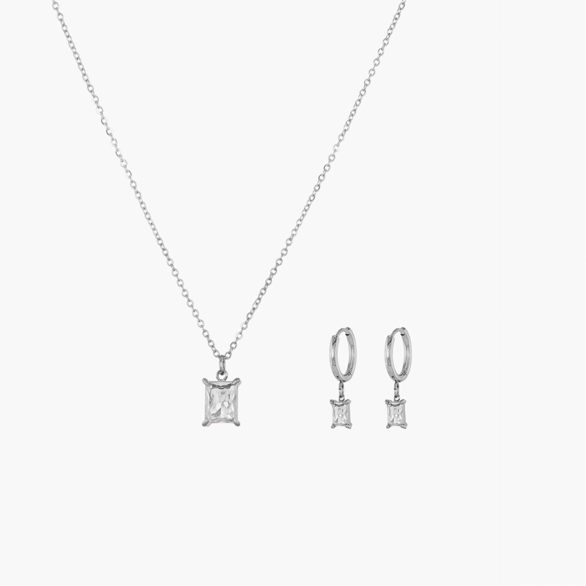 Zestaw z kryształem prostokątnym białym srebrny