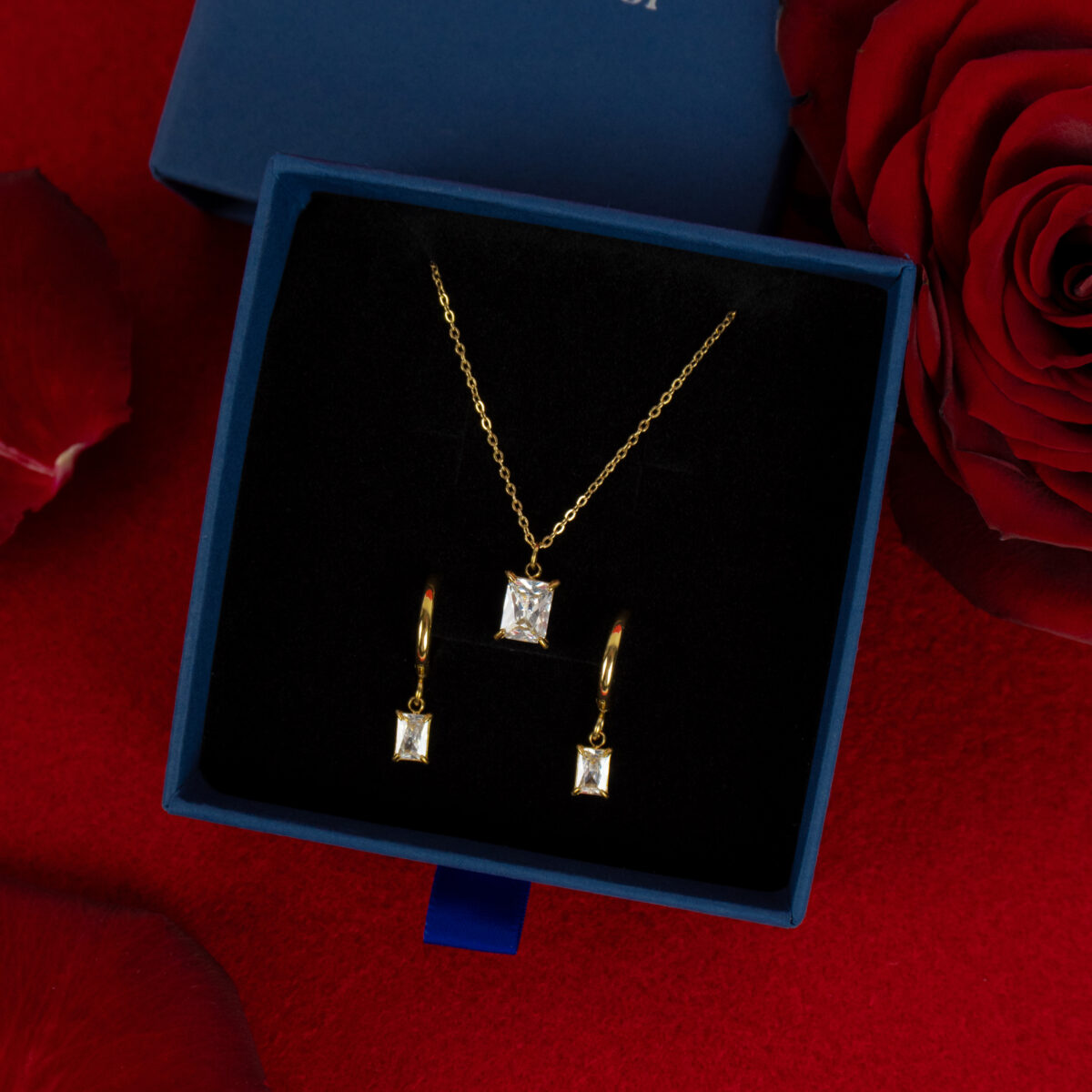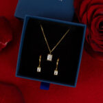 Zestaw z kryształem prostokątnym białym złoty