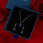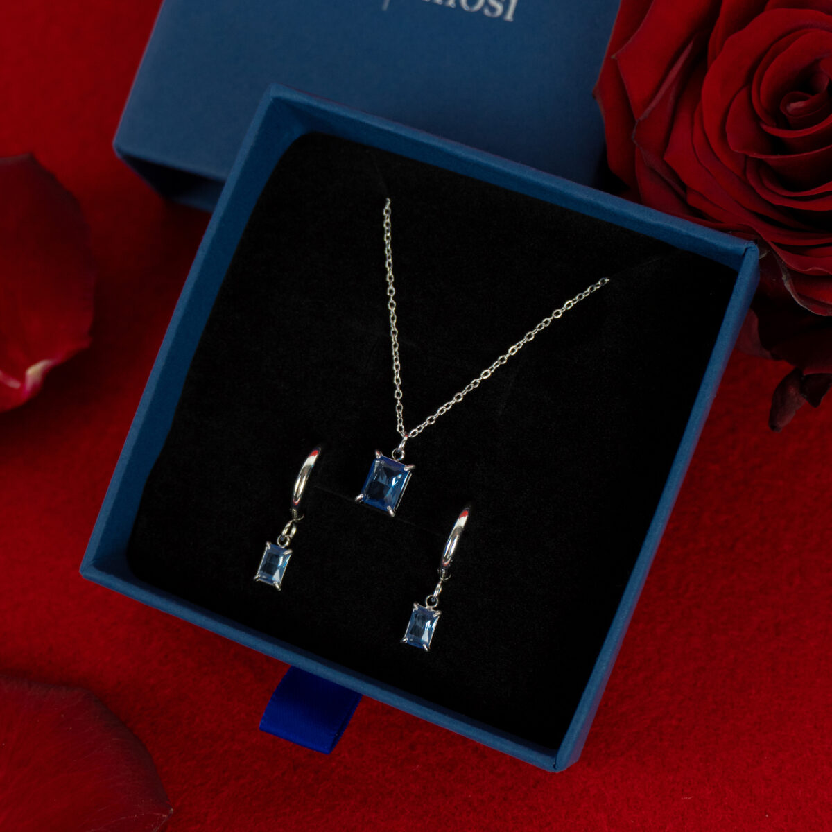 Zestaw z kryształem prostokątnym niebieskim srebrny