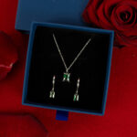 Zestaw z kryształem prostokątnym zielonym srebrny