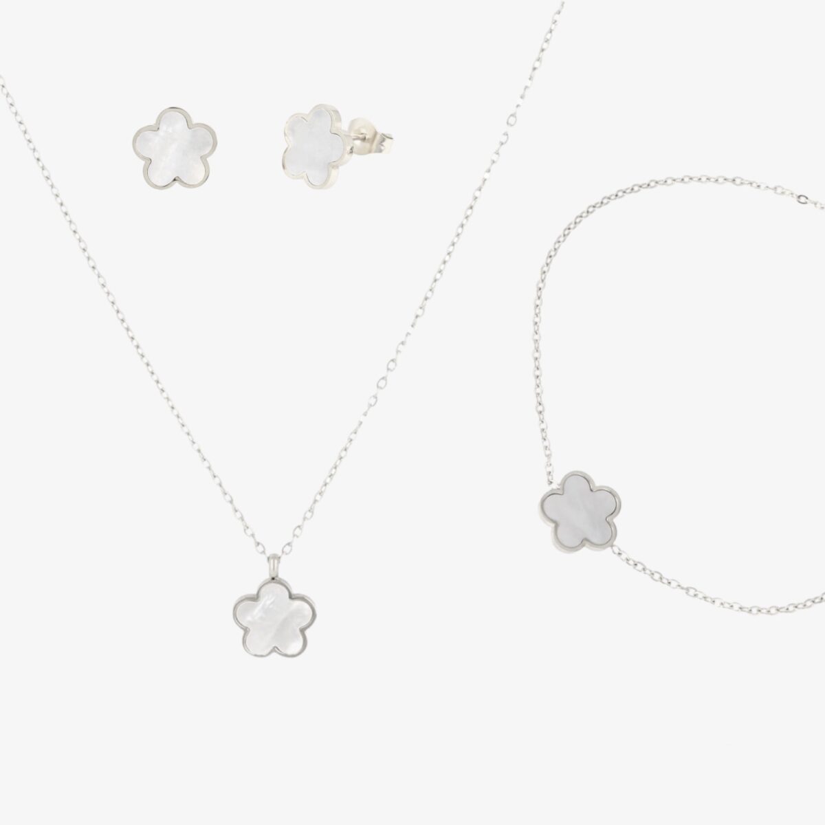 Zestaw z perłowym kwiatkiem srebrny