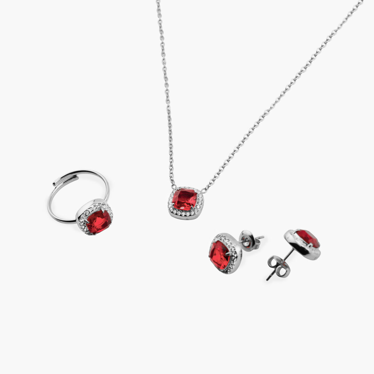 Naszyjnik z rubinowym kryształem i cyrkoniami srebrny