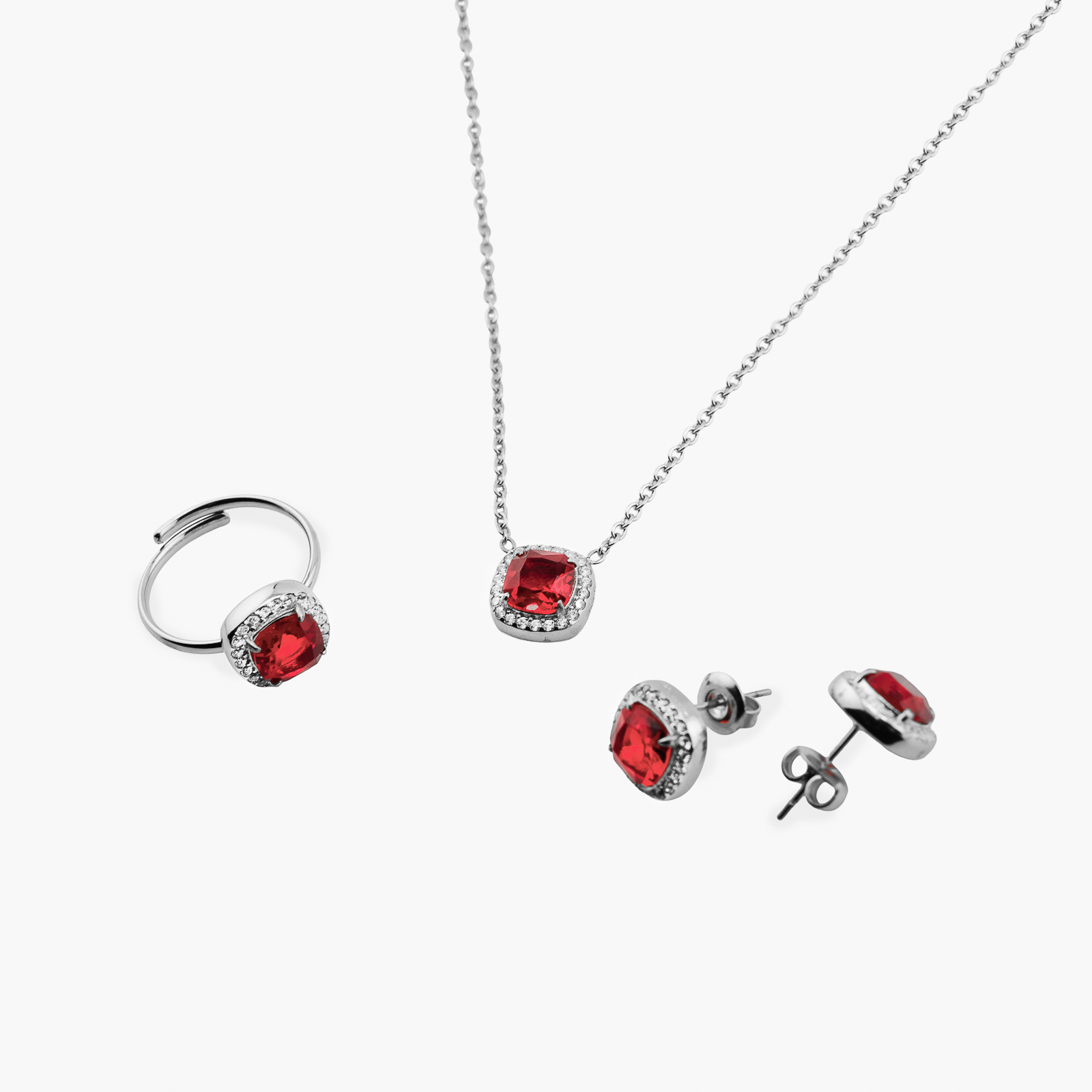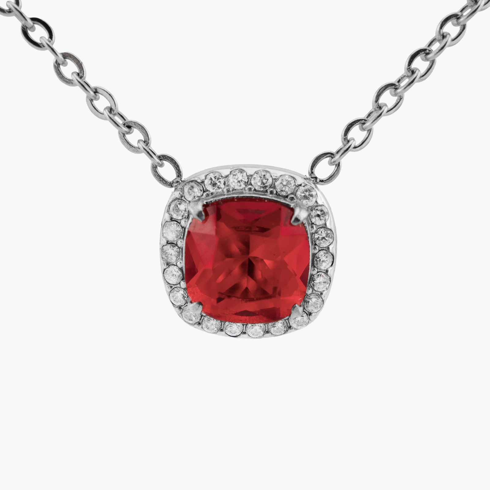 Naszyjnik z rubinowym kryształem i cyrkoniami srebrny