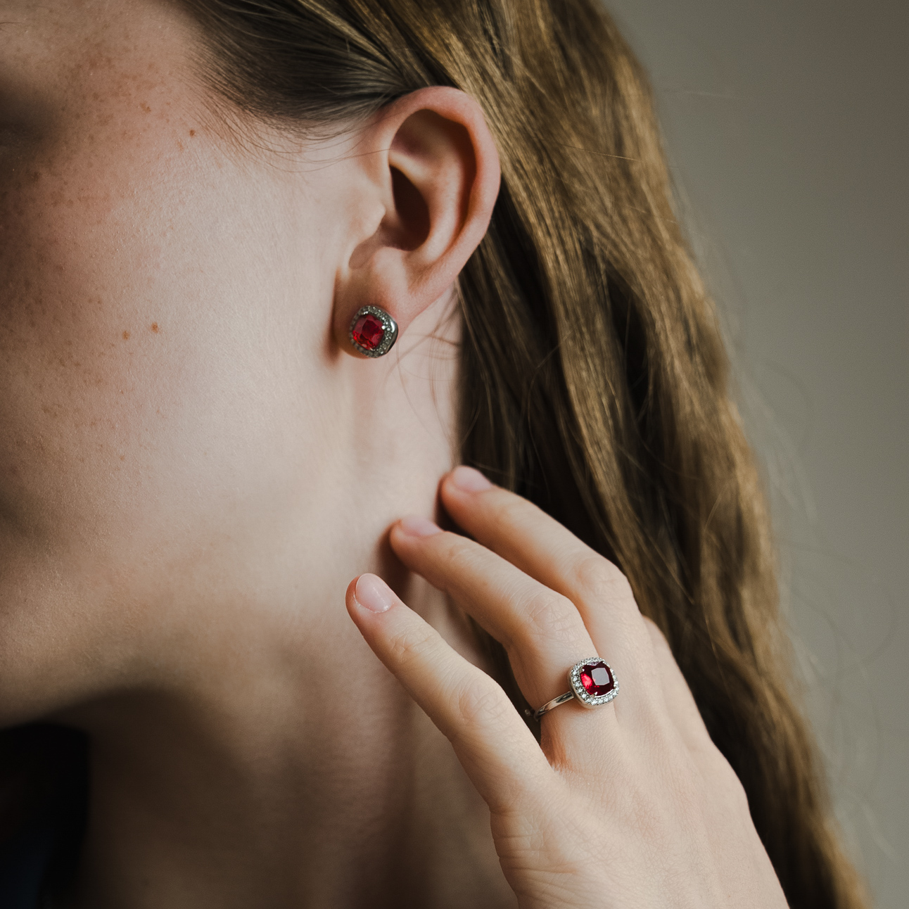 Kolczyki z rubinowym kryształem i cekinami srebrne