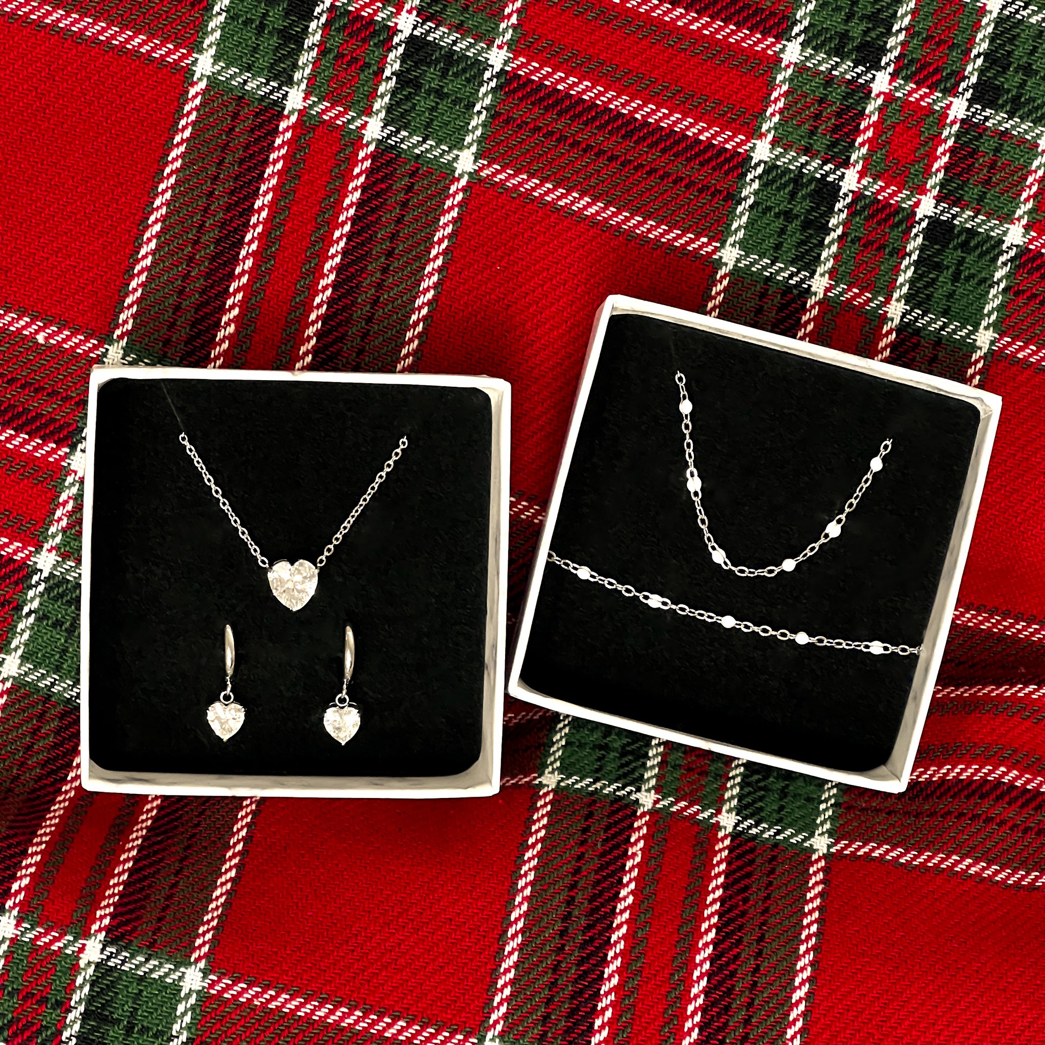 Zestaw z sercem białym srebrny duży