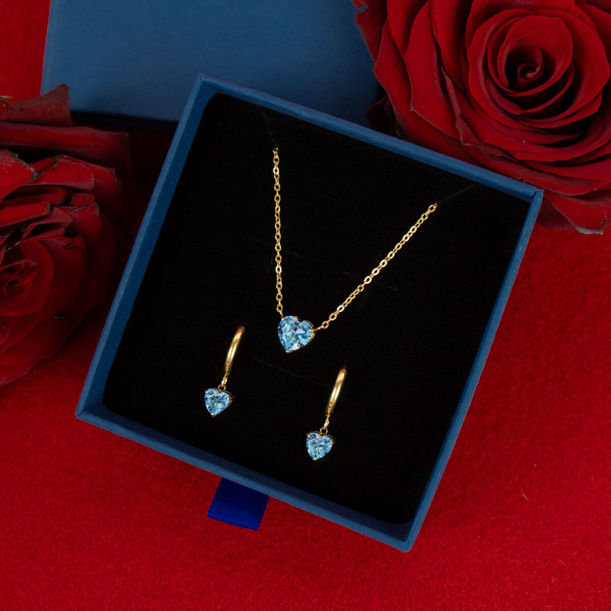 Zestaw z sercem niebieskim złoty