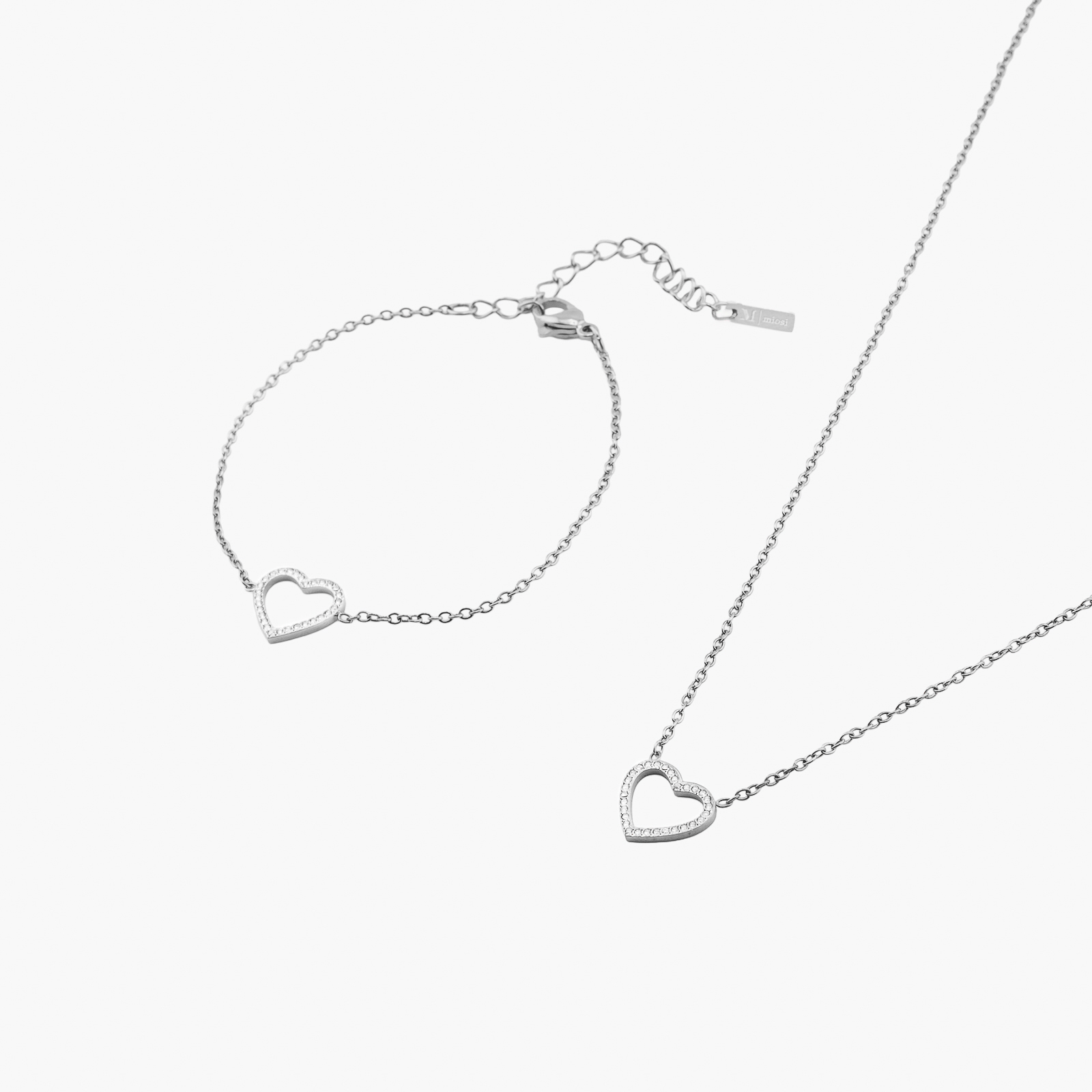 Zestaw z sercem z kryształkami srebrny