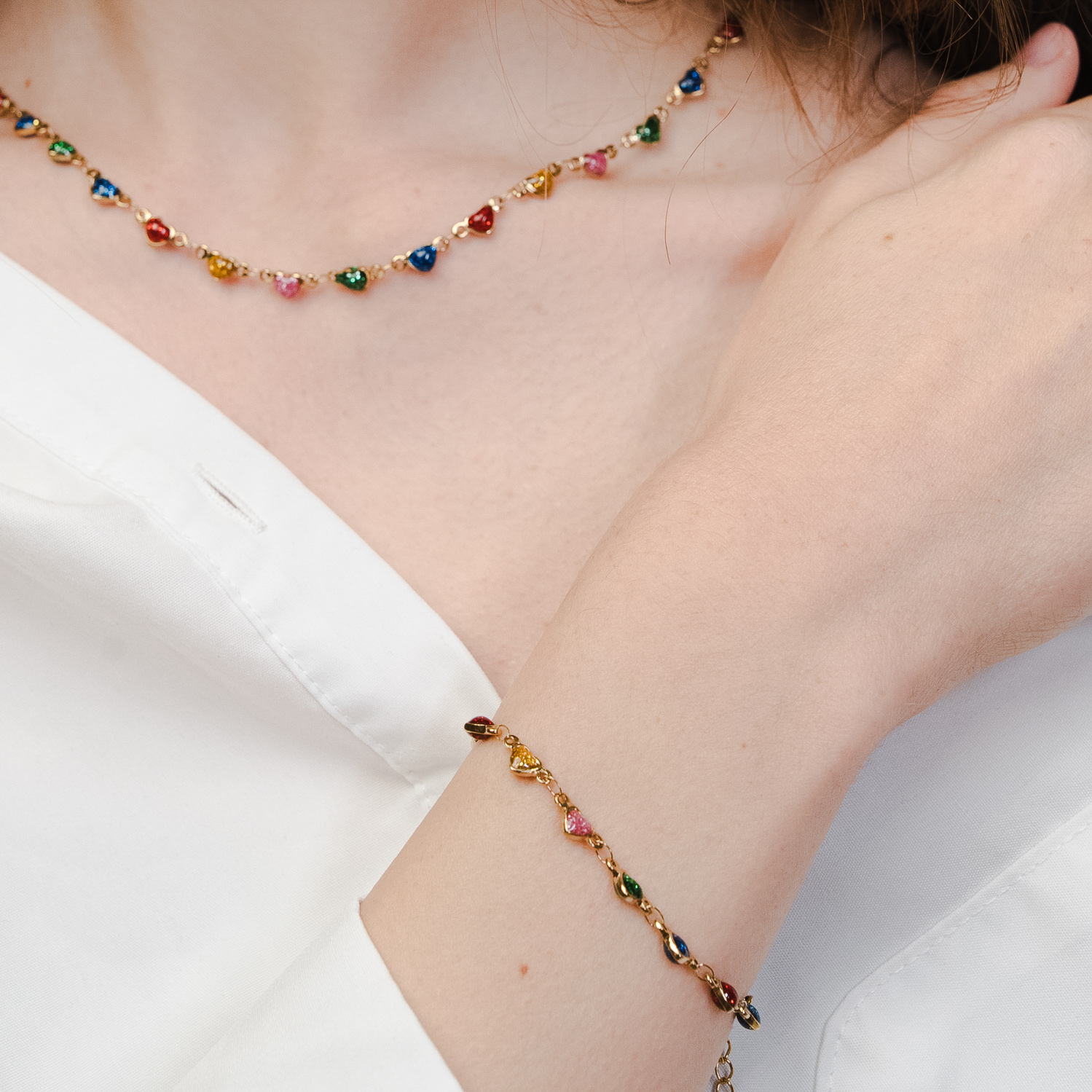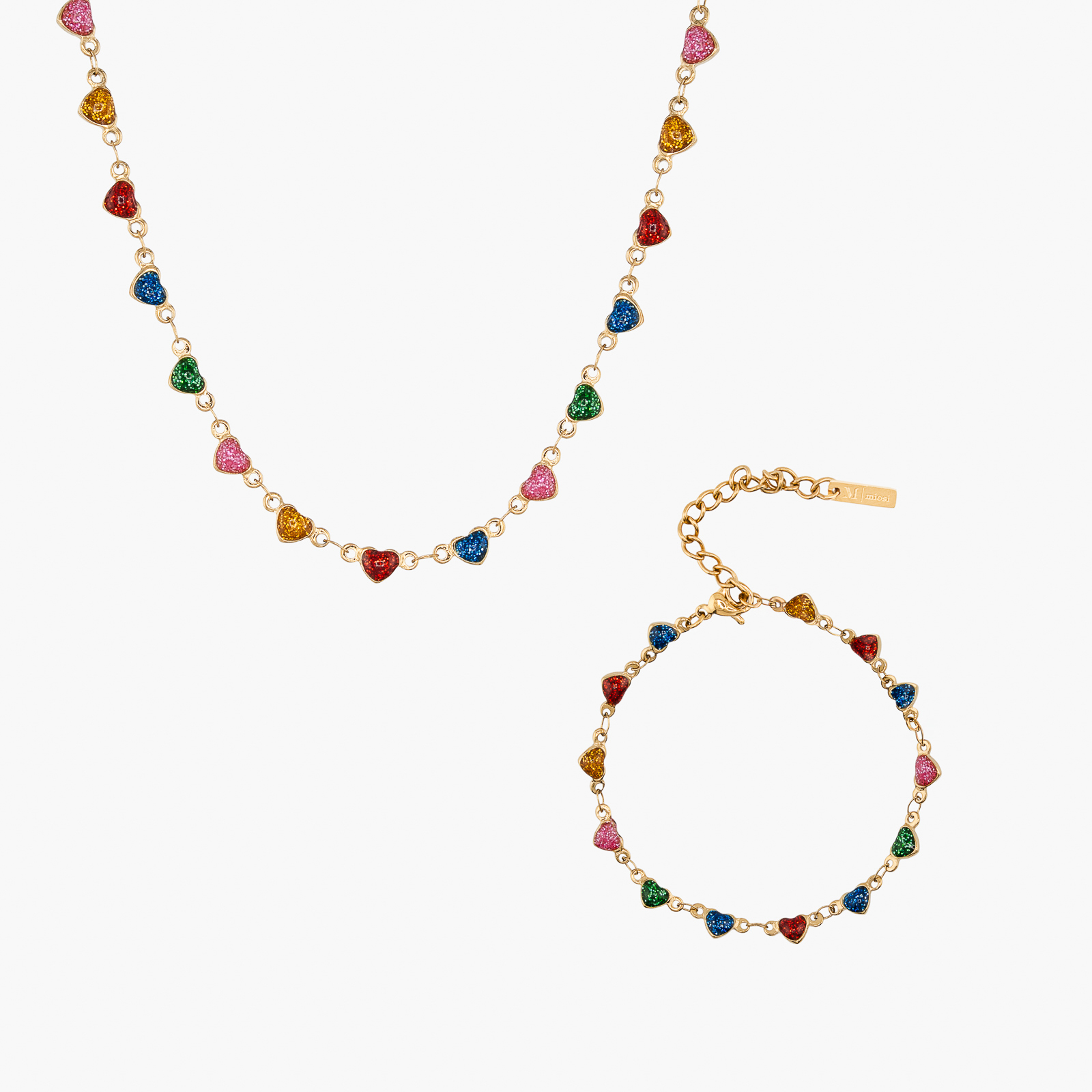 Zestaw z serduszkami kolorowymi złoty