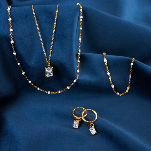 Podaruj jej zestaw biżuterii na co dzień – naszyjnik i bransoletkę, które będą jej subtelnie towarzyszyć każdego dnia, przypominając o Tobie.